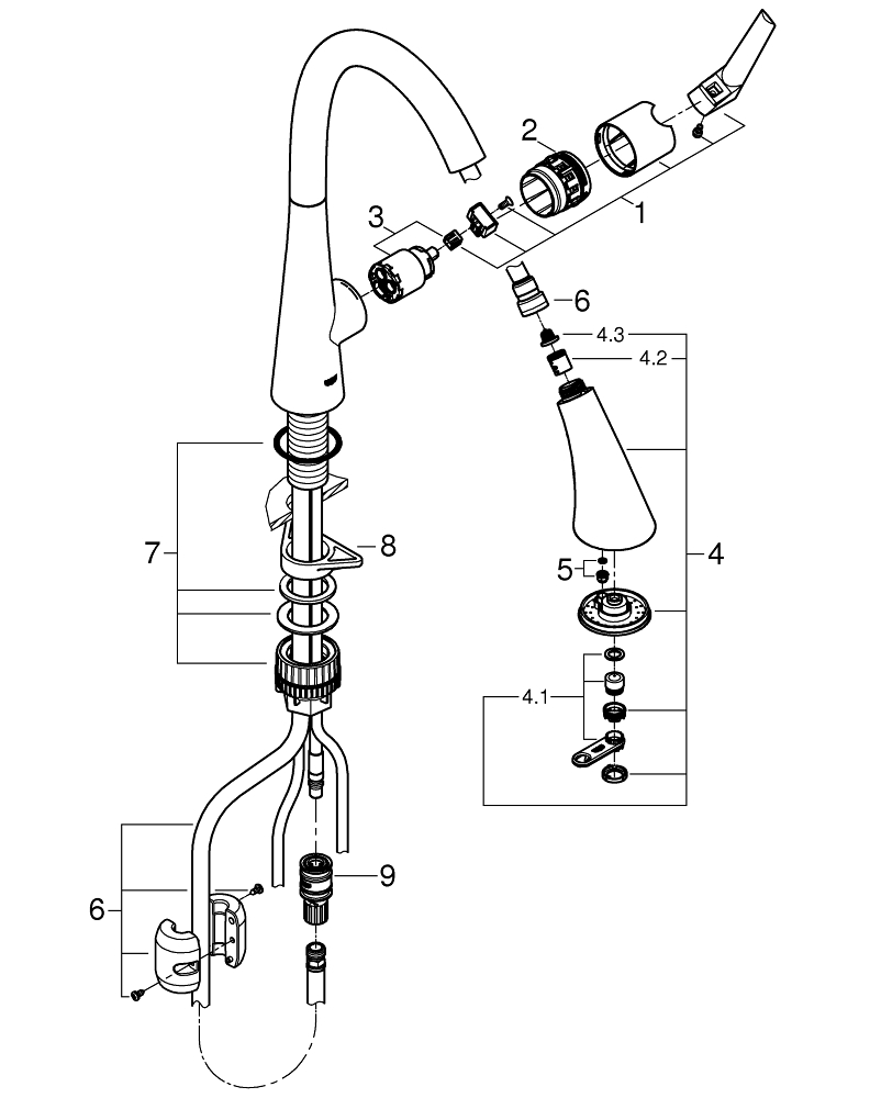 - GROHE Magnetic Docking voor nauwkeurige terugplaatsing van de sproeikop
