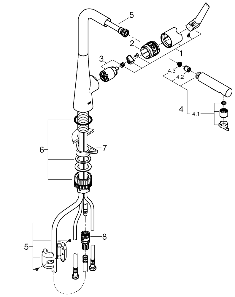 - Uittrekbare sproeikop met twee straalsoorten: laminaire straal en krachtige jetstraal