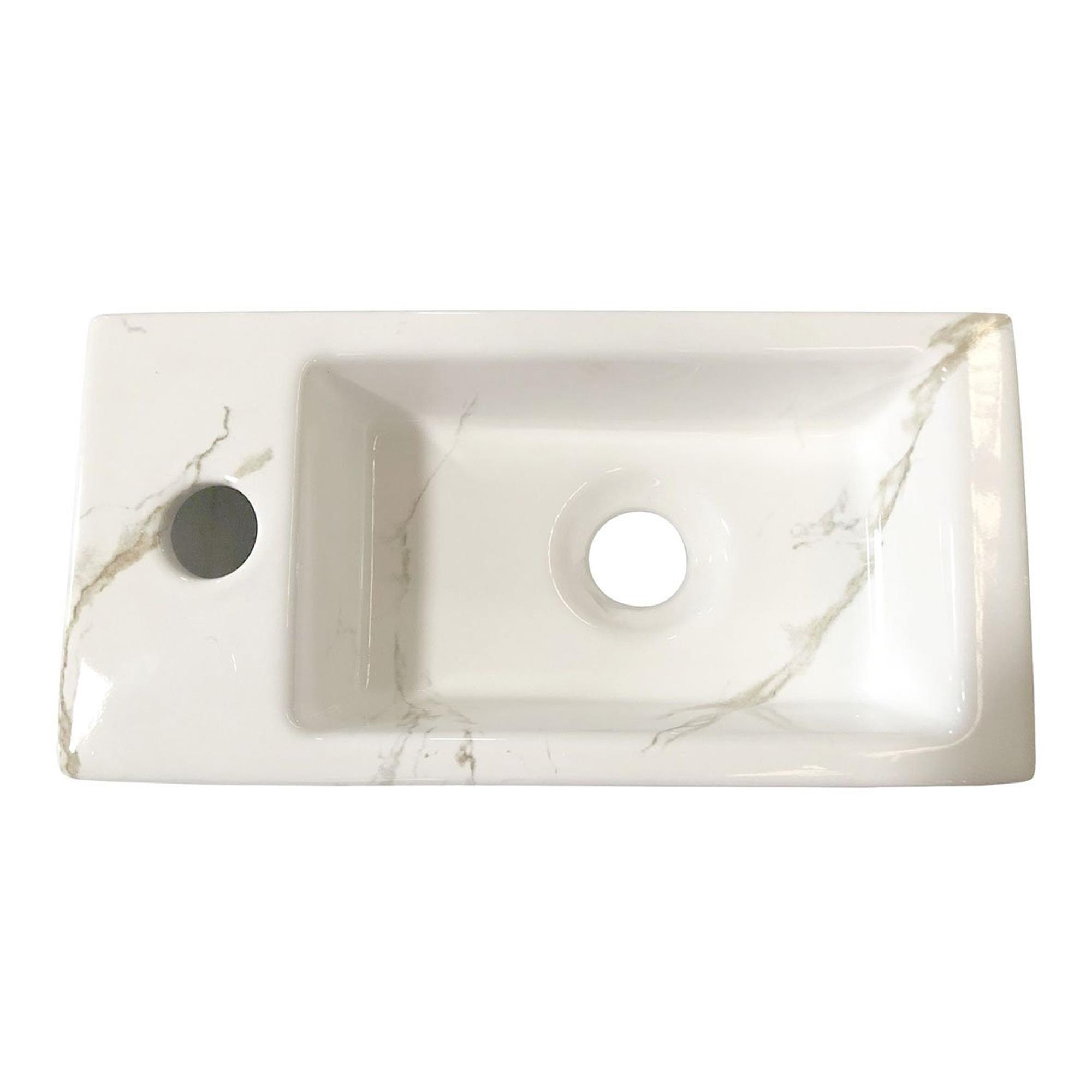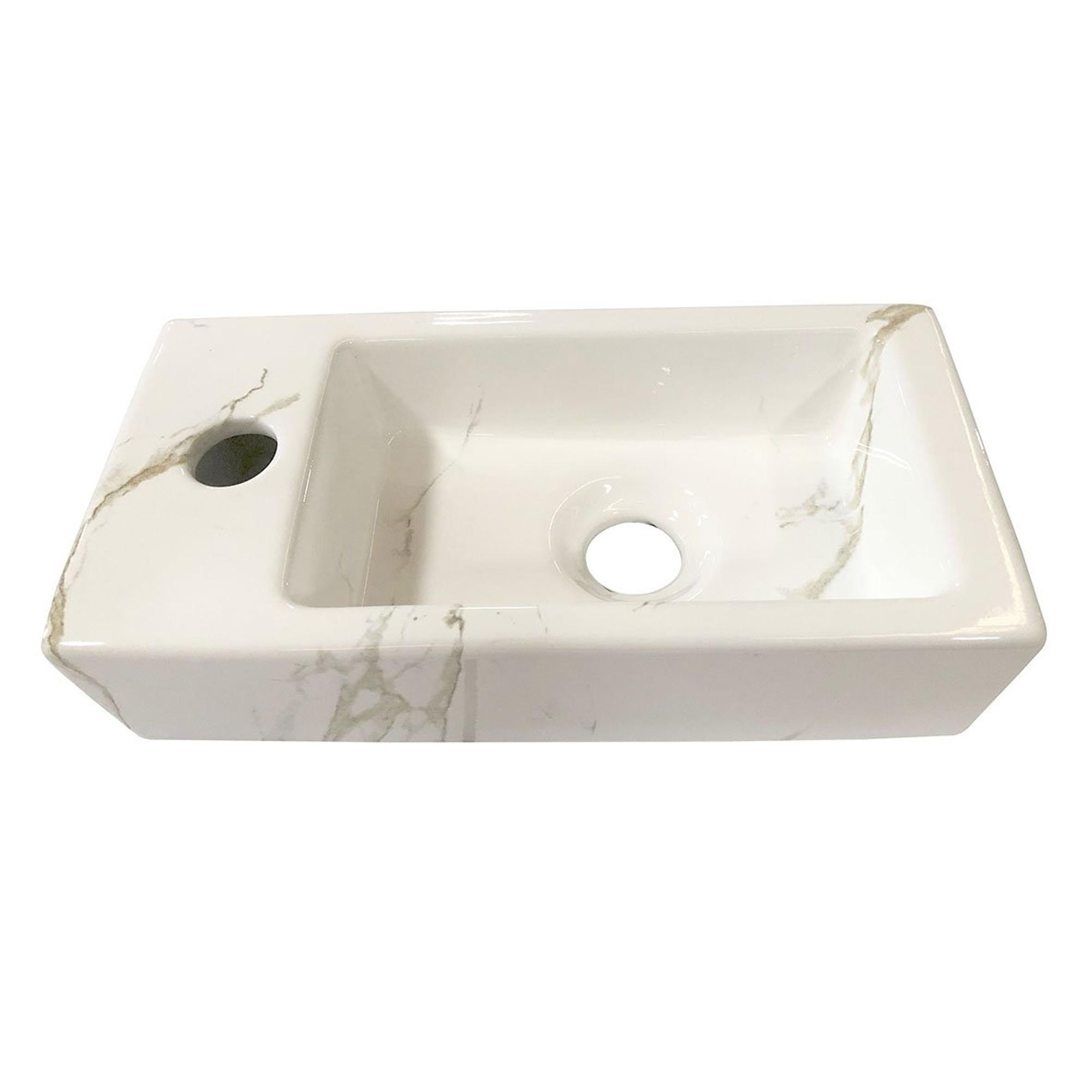 Wiesbaden Rhea S mini fontein links 36,5 x 18 x 9 cm keramiek carrara
