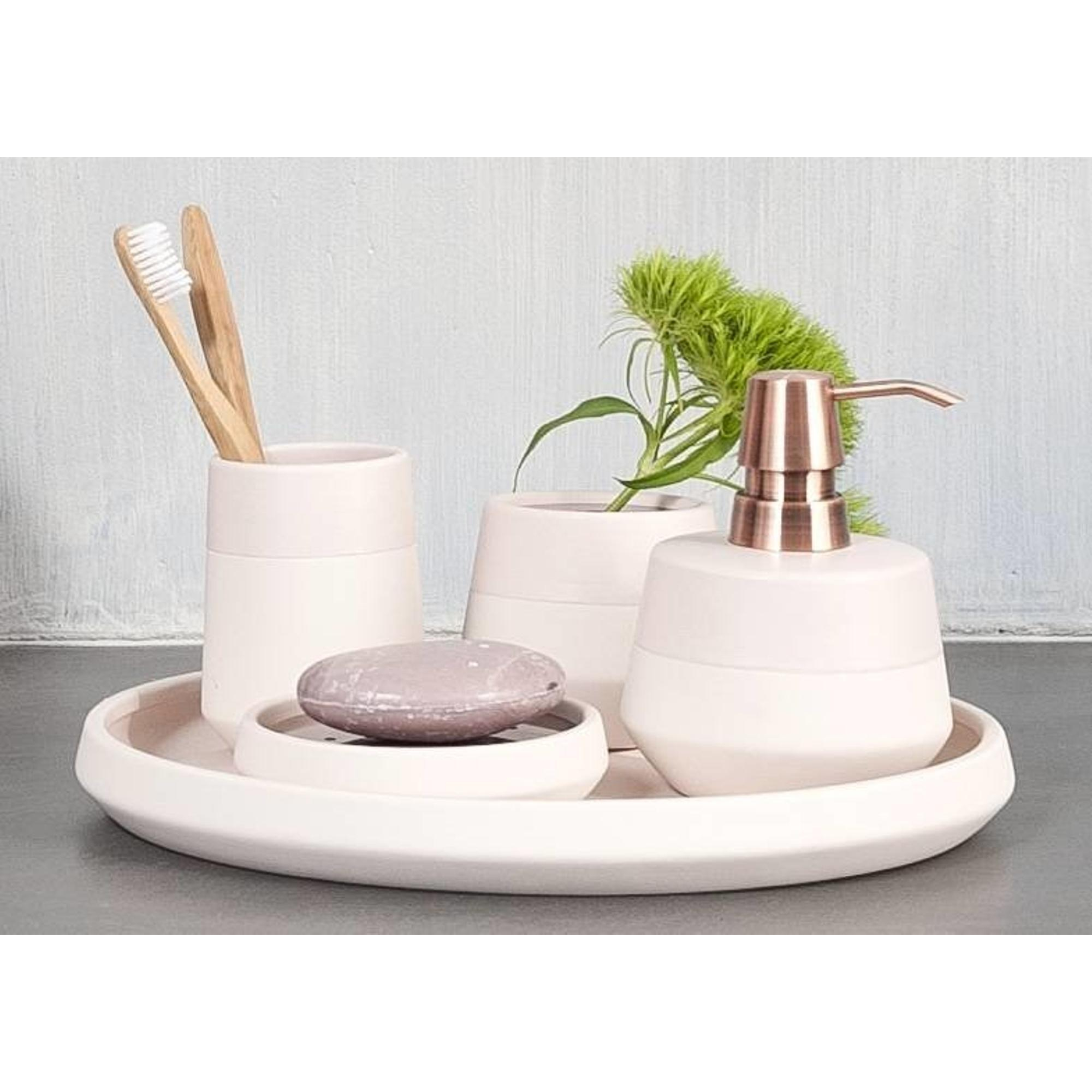De zachte sorbet beige kleur geeft een rustige, warme uitstraling aan je wastafel. Dit maakt het eenvoudig om de dispenser te combineren met witte waskommen, natuurstenen bladen of houttinten, maar ook met zwarte kranen en accessoires voor een subtiel contrast. Het ronde ontwerp oogt vriendelijk en tijdloos, waardoor je niet snel op deze accessoire uitgekeken raakt. Zo creëer je met een simpele toevoeging een luxe, hotelachtige sfeer in je eigen badkamer of toilet.