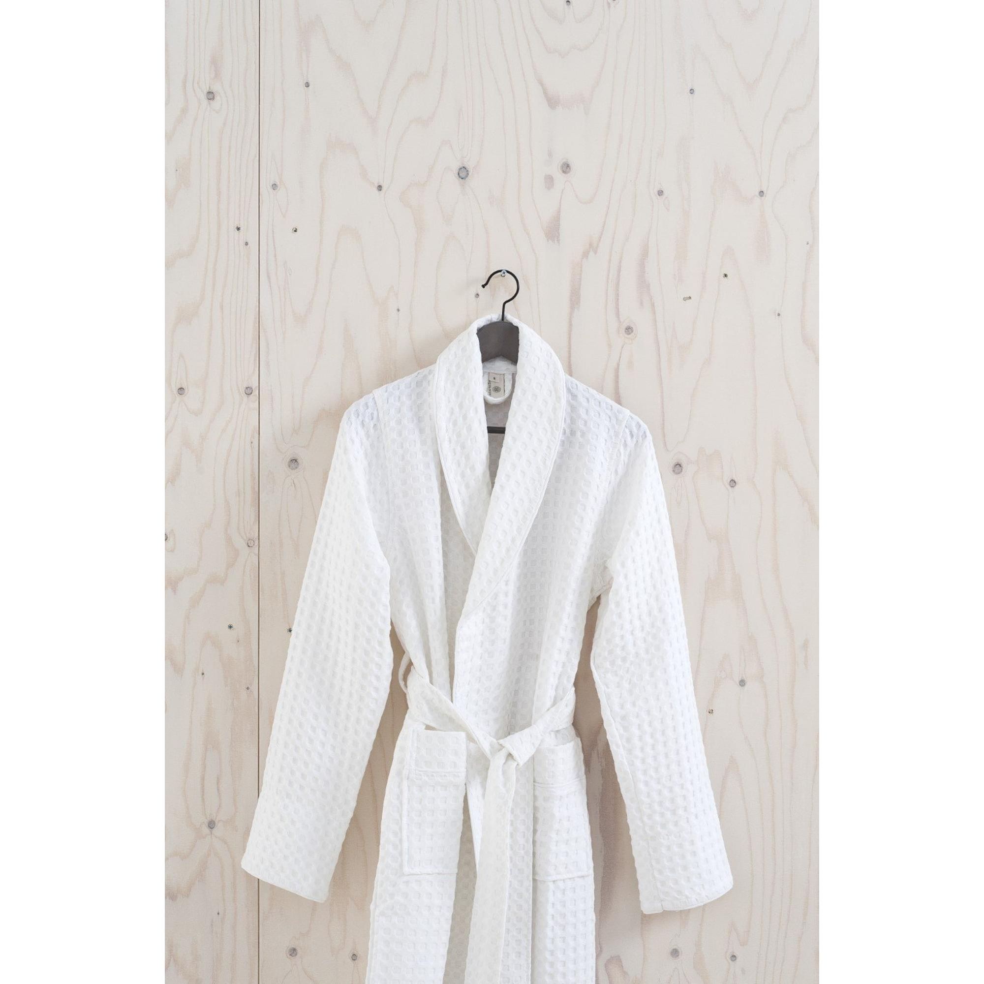 Stel je voor: een badjas die niet alleen heerlijk zacht aanvoelt, maar ook je badkamerervaring naar een hoger niveau tilt. Deze badjas omhult je met een lichte, luchtige textuur die perfect is voor na het douchen of ontspannen op een rustige ochtend. Dankzij het unieke wafelstofmateriaal voelt hij fris en ademend aan, terwijl hij toch warmte biedt wanneer je dat het meest nodig hebt. Het lichte gewicht en de snelle droogtijd maken hem ideaal voor dagelijks gebruik, zonder dat je je ooit bezwaard voelt door een zware stof. Met deze badjas voeg je een vleugje luxe en comfort toe aan je ochtend- en avondritueel, waardoor je badkamer een plek wordt waar je écht tot rust komt.