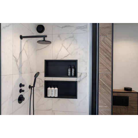 De Brauer Black Edition Regendoucheset inbouw is ontworpen met oog voor stijl. De mat zwarte afwerking geeft een eigentijdse uitstraling aan de badkamer. De strakke lijnen en minimalistische vormgeving zorgen voor een moderne en luxe look. Deze doucheset voegt niet alleen functionaliteit toe aan de ruimte, maar dient ook als een designelement dat de badkamer transformeert tot een elegant toevluchtsoord.