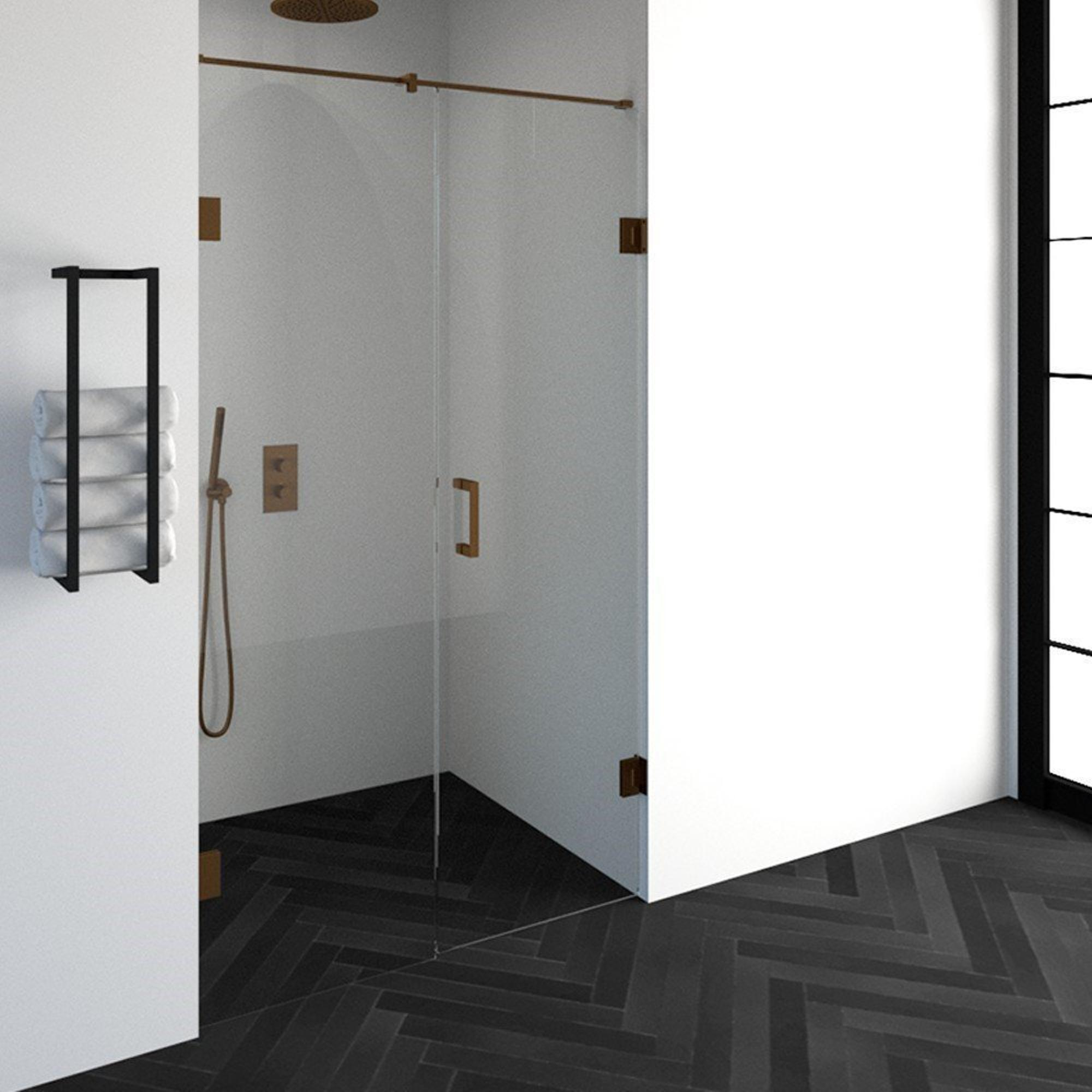 BRAUER Create douchedeur 120x200cm 2-delig profielloos met antikalk en 8mm veiligheidsglas koper