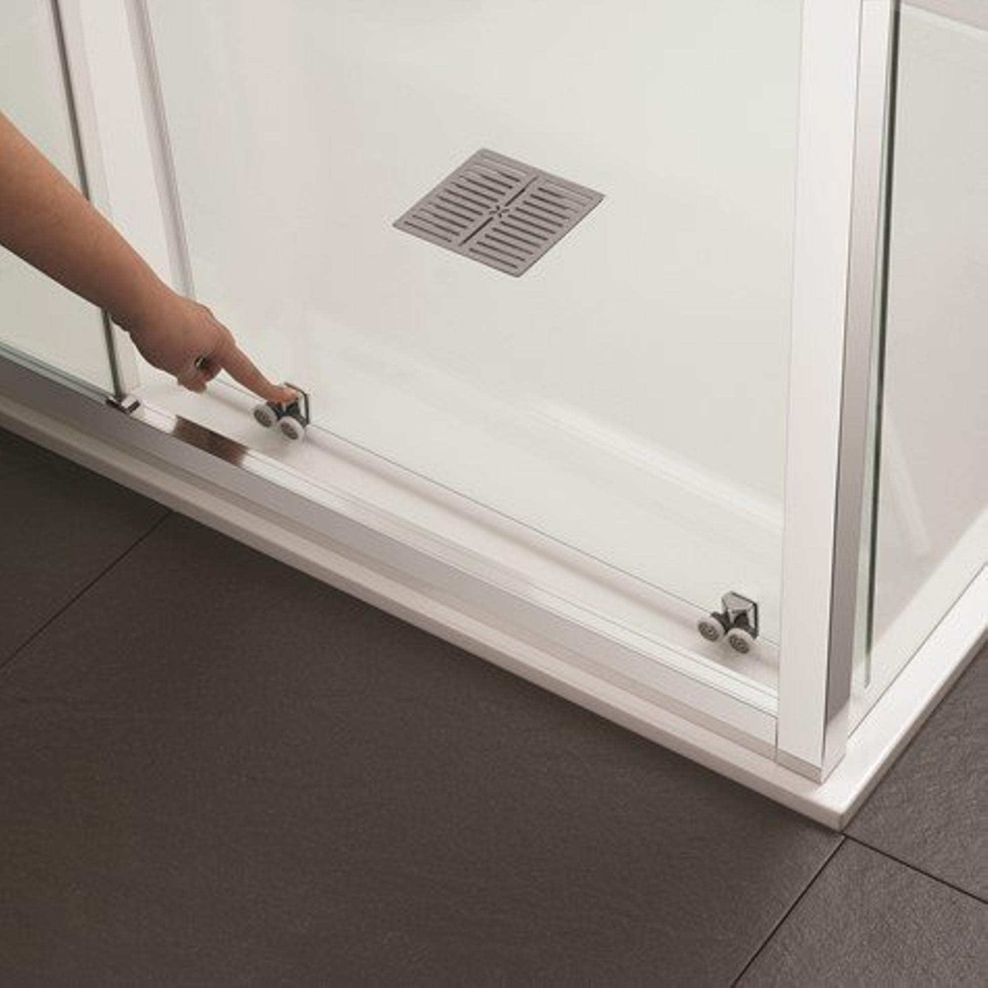 De deur is snel te verwijderen voor reiniging dankzij de soepele dubbele rollers die in een handomdraai losgeklopt kunnen worden. Het stevige en sterke 6 mm ultra heldere glas zit in een frame van geanodiseerd aluminium en gecoat met een strakke zilveren afwerking.