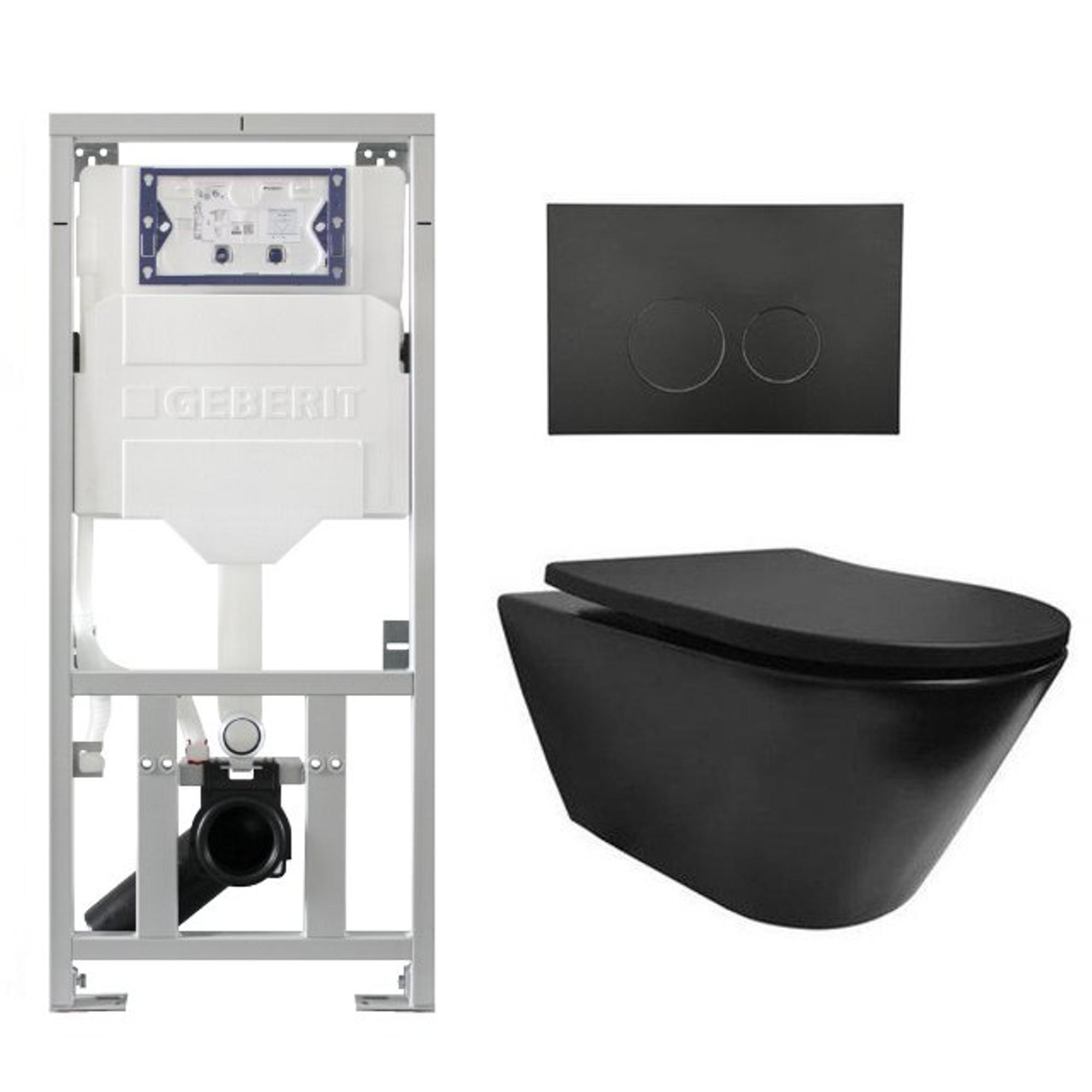Wiesbaden Stereo toiletset rimless inclusief UP320 toiletreservoir met softclose zitting met bedieningsplaat mat zwart