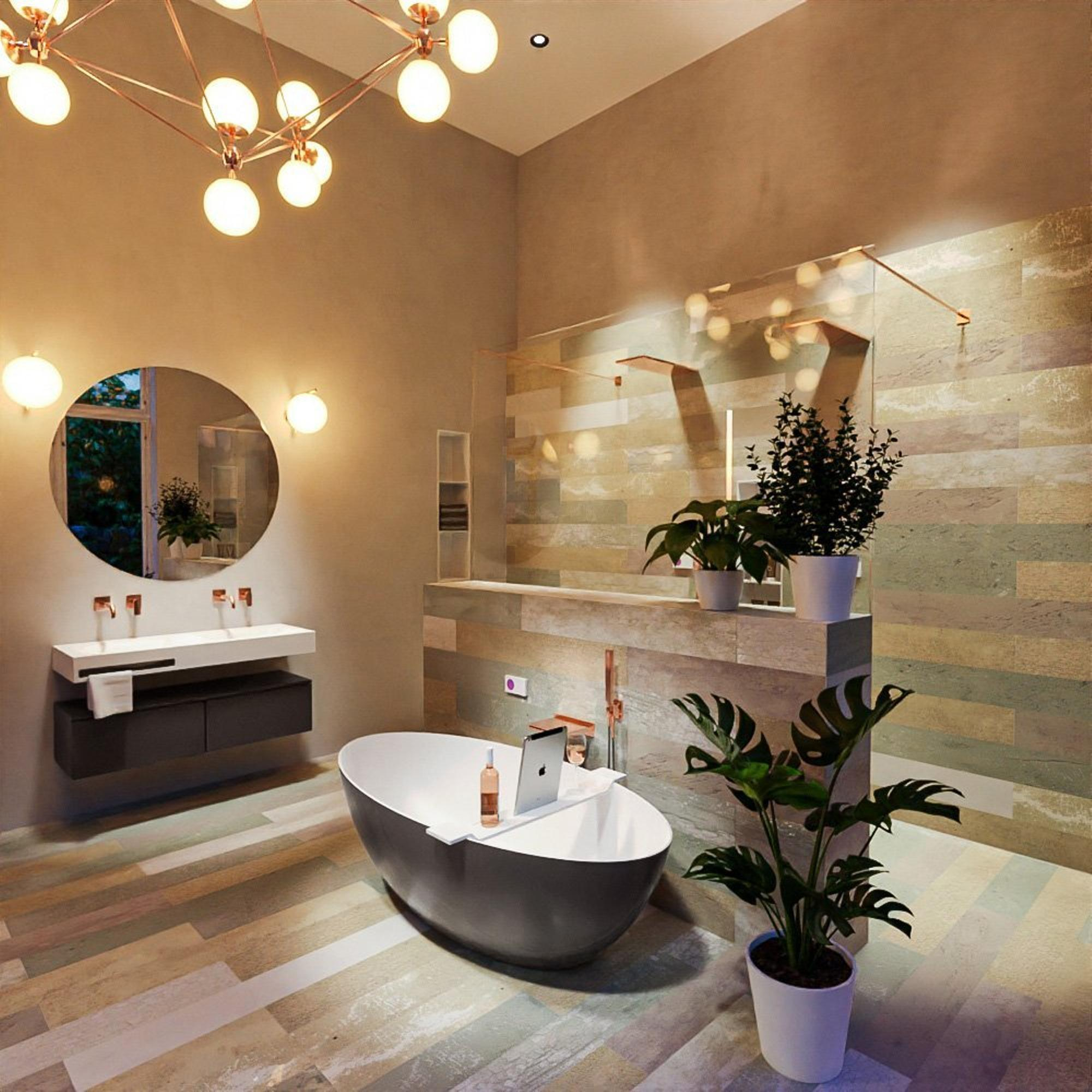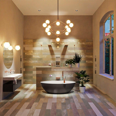 De ovale vorm kan goed vrijstaand geplaatst worden, maar zoals op de afbeelding staat het ook schitterend voor of bij een muur. Deze schitterende badkamer opstelling is gecombineerd met het badmeubel ALAN en Solid Surface nissen. Zowel de wastafel als de meubels kunnen perfect matchen met het bad. Je kunt met een gerust hart kiezen voor kleur in de badkamer.