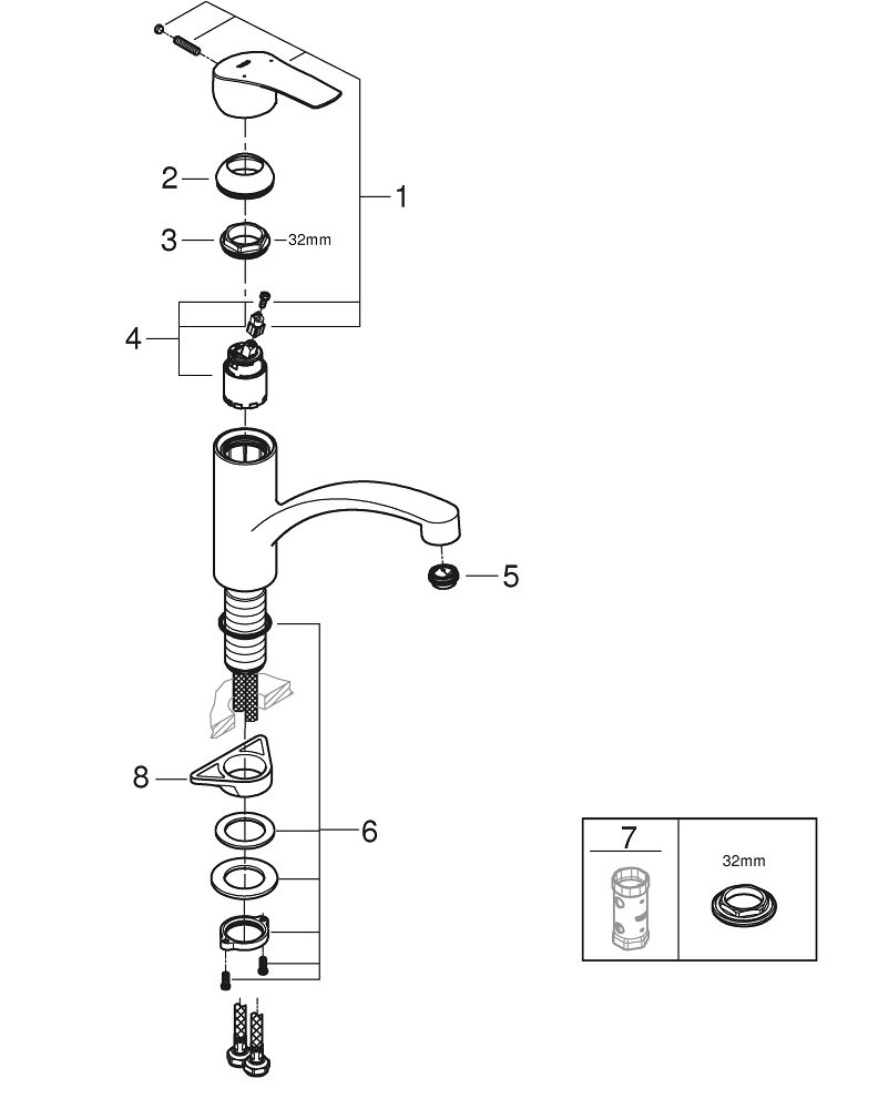 - GROHE FastFixation snelmontagesysteem voor een snelle en eenvoudige installatie