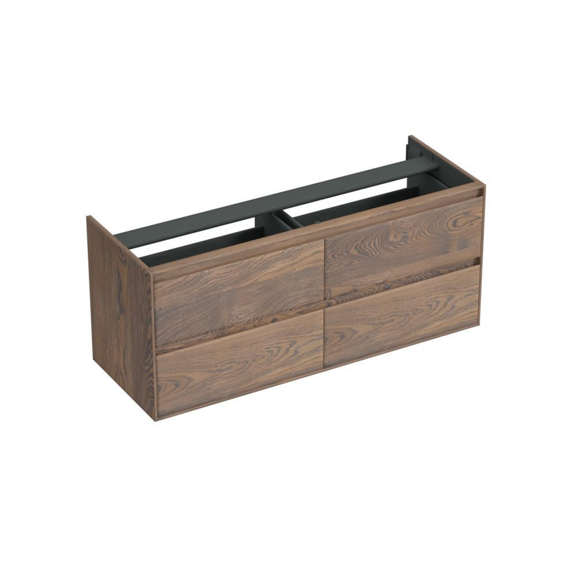 Forzalaqua Reno 2.0 wastafelonderkast 140x51x60cm met 4 softclose greeploze lades Massief Eiken Havanna