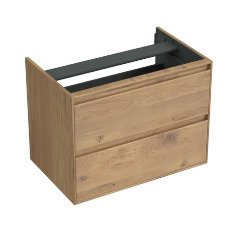 Forzalaqua Reno 2.0 wastafelonderkast 80x51x60cm met 2 softclose greeploze lades Massief Eiken Oyster