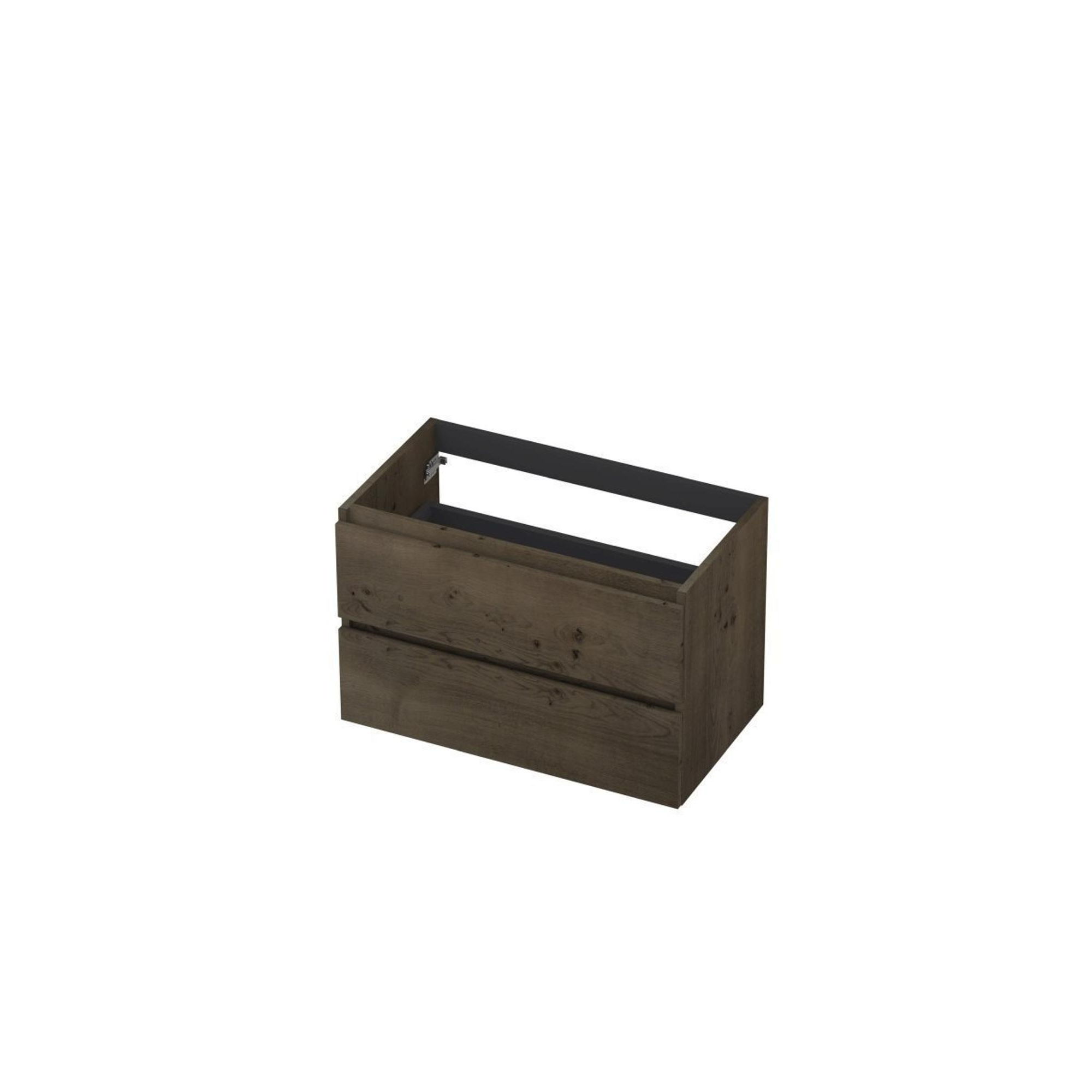INK Fineer Wastafelonderkast - 80x45x52cm - 2 lades - greeploos - houten keerlijst - MDF Fineer Charcoal
