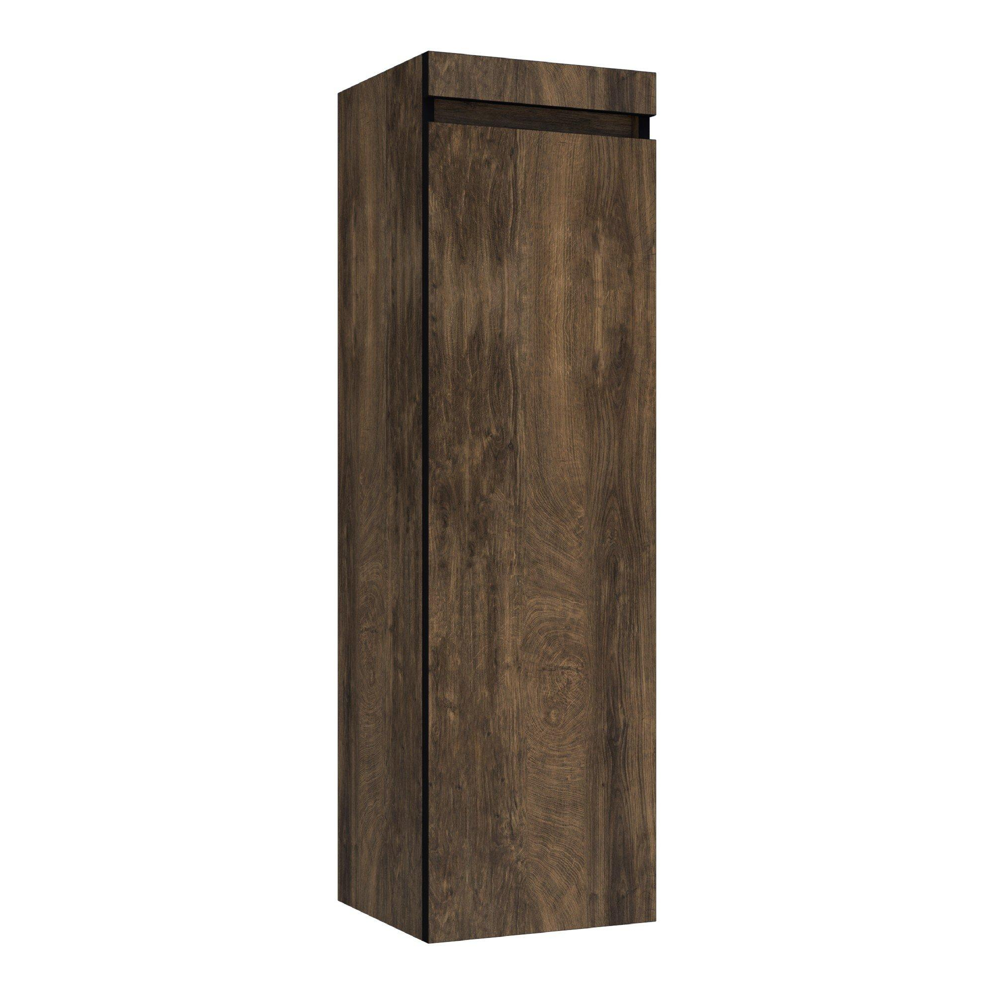 Deze halfhoge badkamerkast is een slimme keuze als je op zoek bent naar extra opbergruimte zonder dat je badkamer volgebouwd aanvoelt. Dankzij het slanke formaat is dit meubel ideaal voor zowel een compacte badkamer als een moderne familiebadkamer waar je net dat beetje extra bergruimte mist voor handdoeken, verzorgingsproducten of schoonmaakspullen. De warme houtkleur sluit mooi aan bij natuurlijke, industriële en moderne interieurs, terwijl het strakke, greeploze design zorgt voor een rustige en opgeruimde uitstraling. Doordat de kast aan de wand wordt gemonteerd, houd je de vloer vrij, wat niet alleen ruimtelijk oogt, maar ook het schoonmaken een stuk makkelijker maakt. Met de linksdraaiende deur en praktische indeling creëer je een overzichtelijke plek voor al je dagelijkse badkamerbenodigdheden, zonder concessies te doen aan stijl.