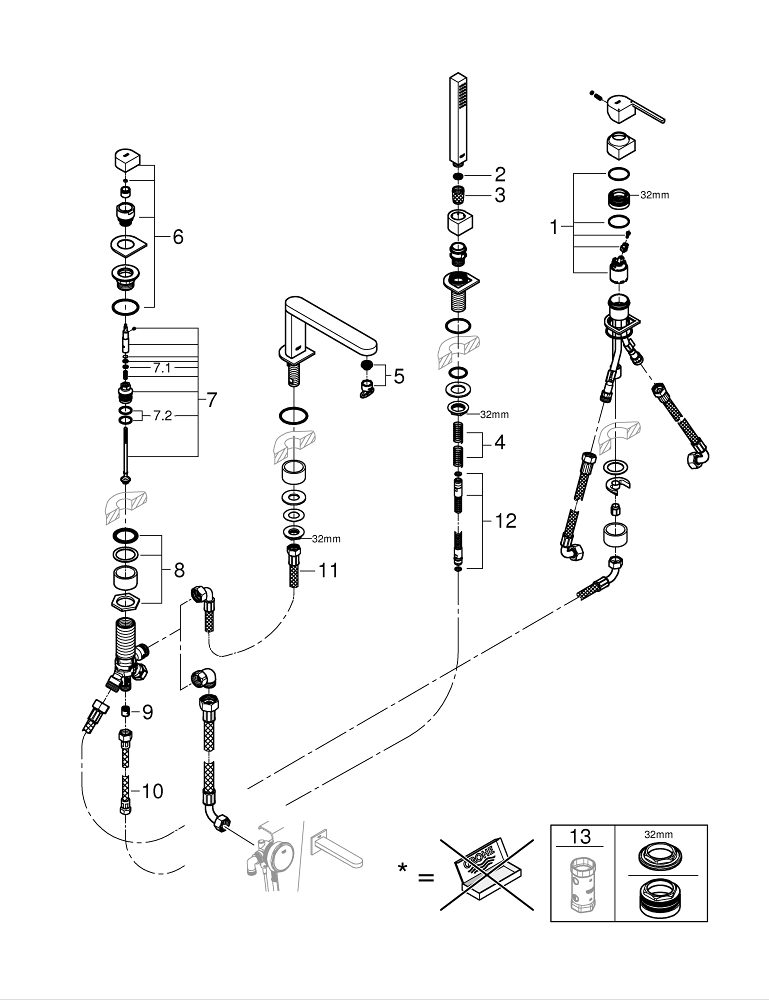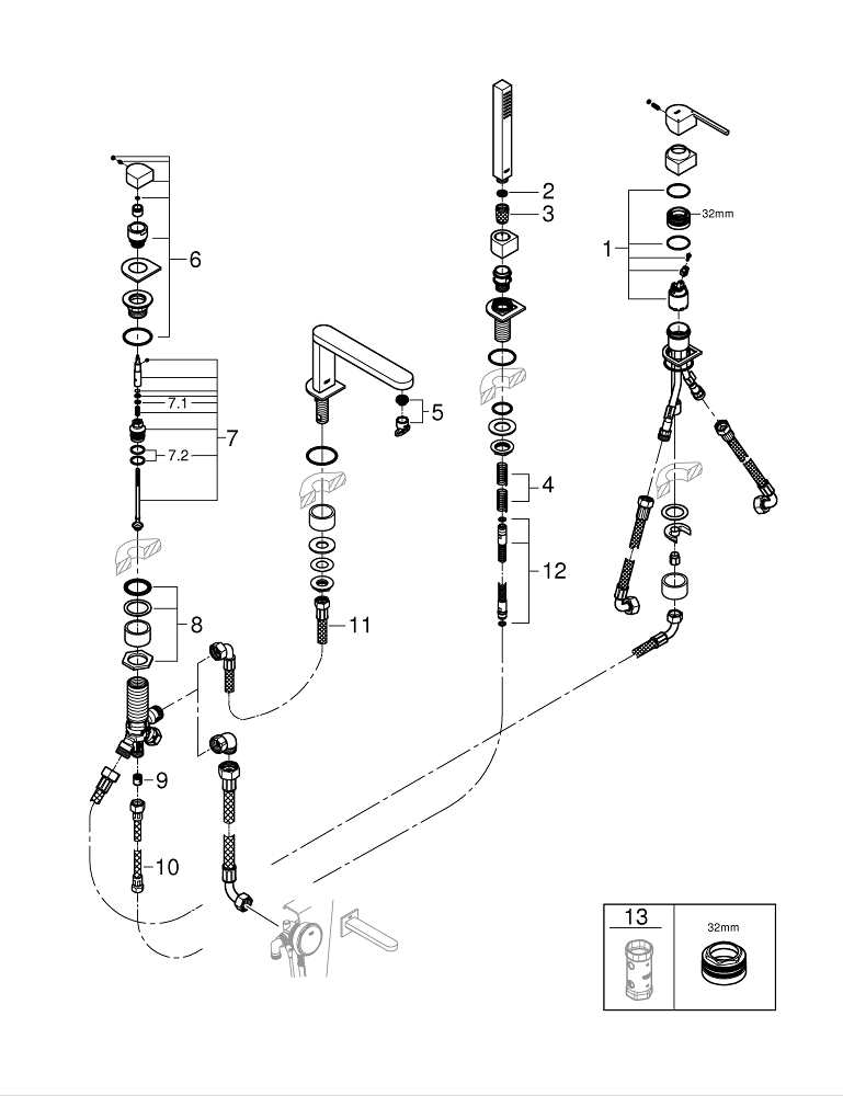 - Omstel, baduitloop, handdouche en doucheslang van 200cm inbegrepen