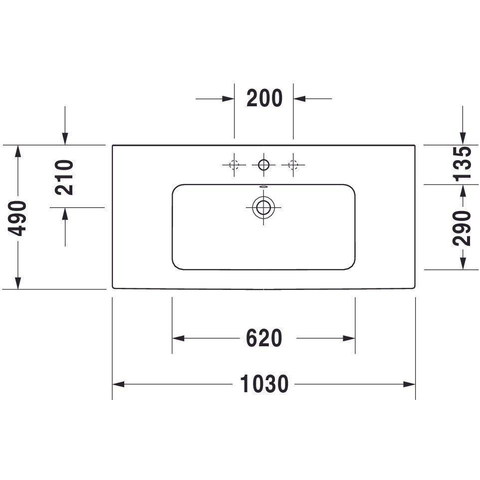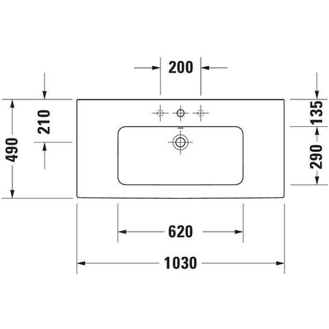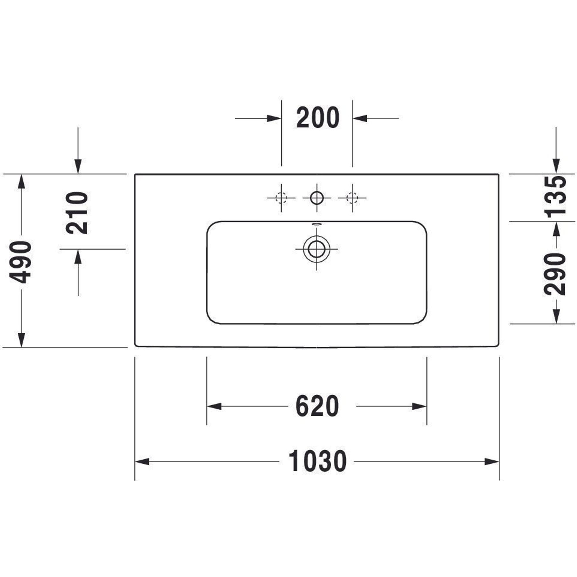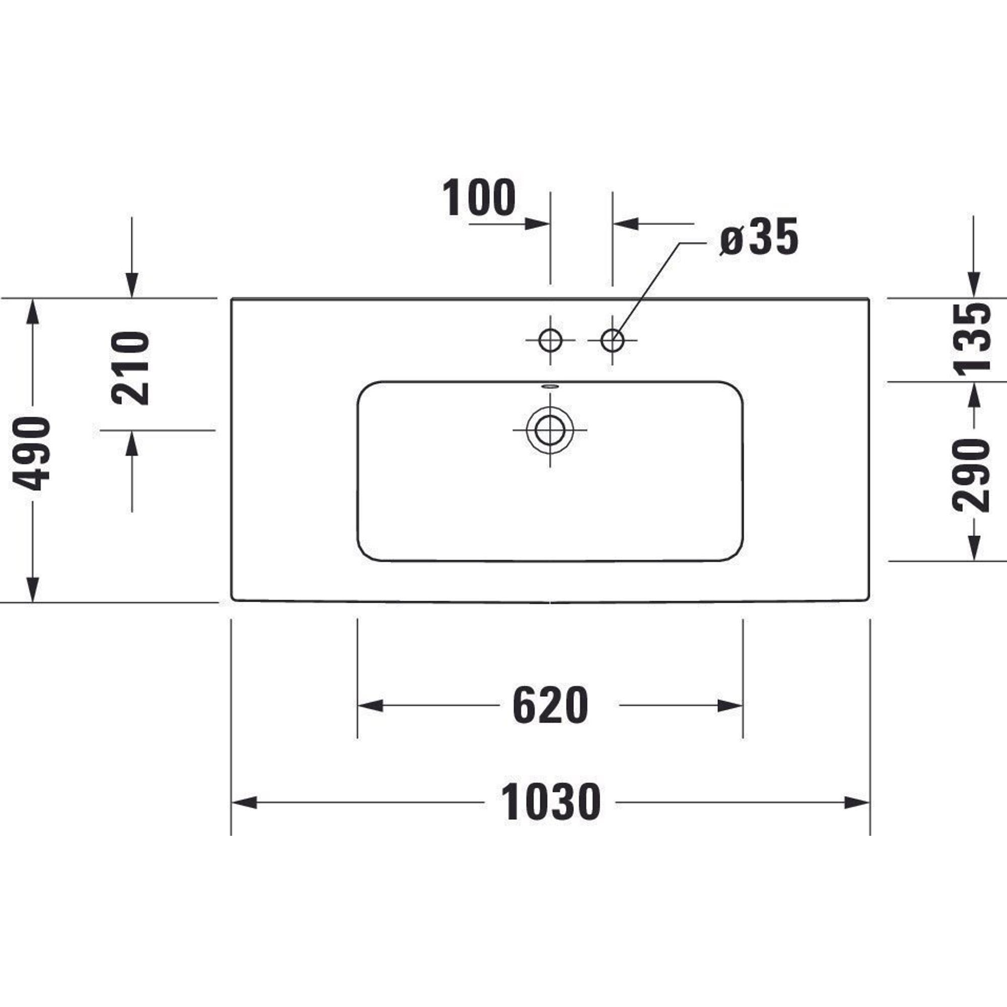 Duravit Me by starck wastafel 103x49cm zonder kraangat met overloop wit