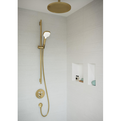 Deze hoofddouche is een toonbeeld van verfijning en klasse. De polished gold optic afwerking geeft een warme, luxe uitstraling die perfect past in moderne en klassieke badkamers. Het ronde ontwerp met een diameter van 280 mm zorgt voor een royale waterverdeling, waardoor je badkamer direct een stijlvolle upgrade krijgt. Door de metalen afdekplaat voelt de douchekop stevig en duurzaam aan, wat bijdraagt aan de hoogwaardige uitstraling. Met dit product voeg je niet alleen functionaliteit toe, maar ook een designstatement dat je badkamer compleet maakt.