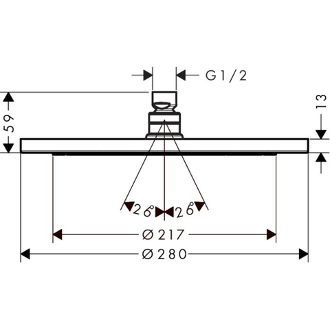 - Diameter straalplaat: 280 mm voor een royale waterstraal