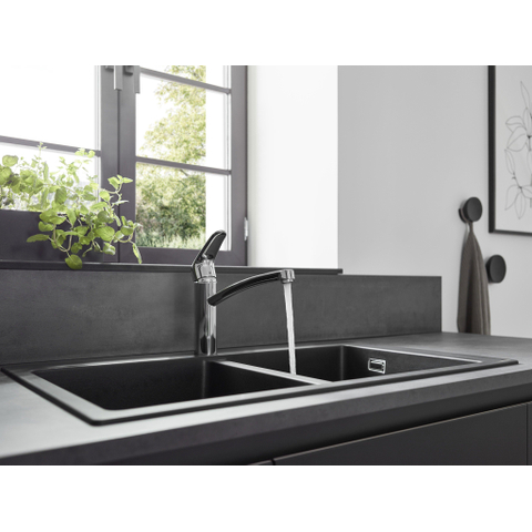 Het 360 graden draaibereik van de uitloop biedt je optimale flexibiliteit in gebruik. Of je nu grote pannen vult of de spoelbak schoonmaakt, je bedient de kraan moeiteloos vanuit elke hoek. De normale waterstraal zorgt voor een prettige en gecontroleerde waterstroom, ideaal voor dagelijks gebruik. Dankzij de ergonomische hendel regel je eenvoudig de temperatuur en waterhoeveelheid met één hand. Dit maakt de kraan niet alleen gebruiksvriendelijk, maar ook zeer praktisch voor drukke keukens waar snelheid en gemak centraal staan.