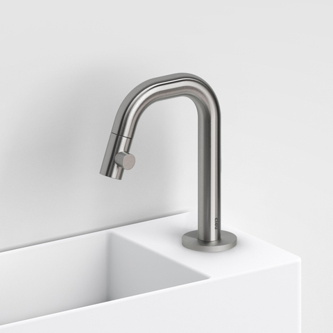 Clou Kaldur fonteinkraan 2x15.9cm korte uitloop rechts RVS geborsteld