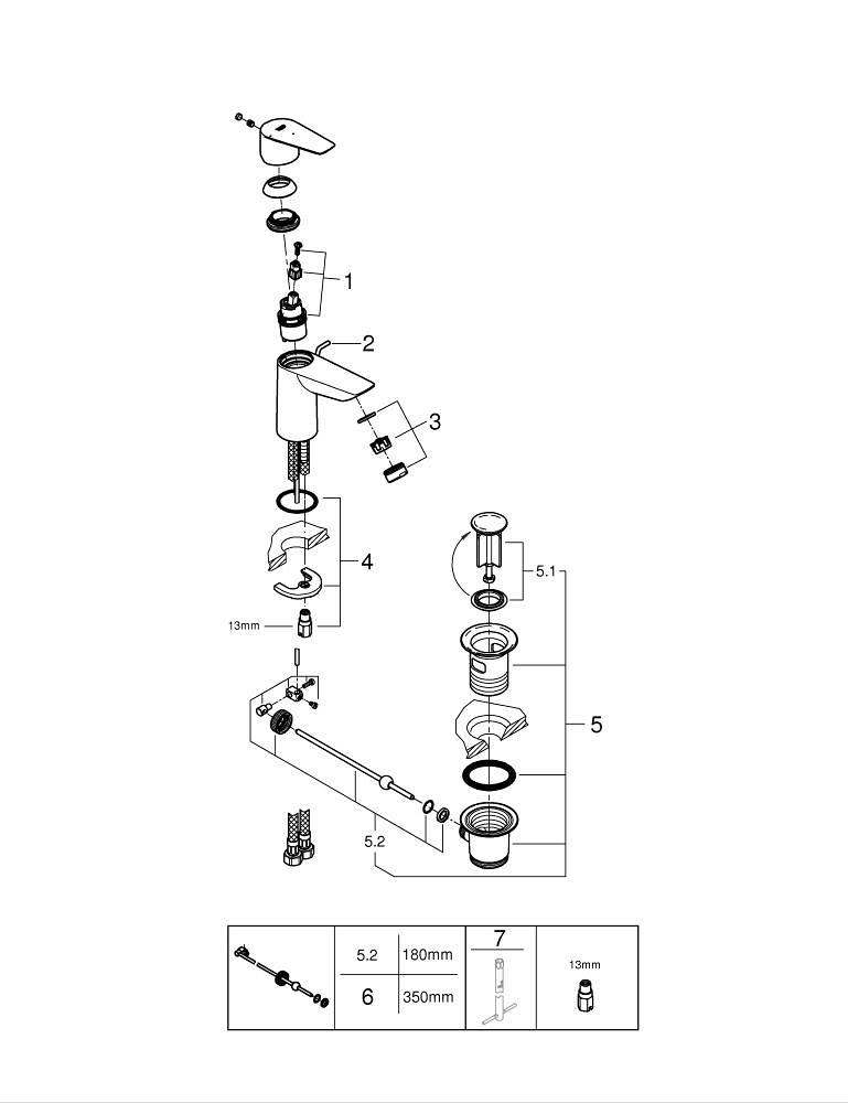 GROHE BauEdge waterbesparende wastafelkraan S-size m. waste chroom