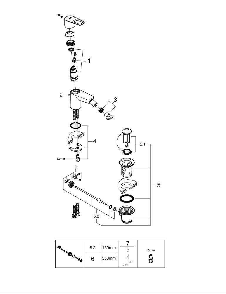 GROHE BauLoop 1-gats bidetkraan m. waste chroom