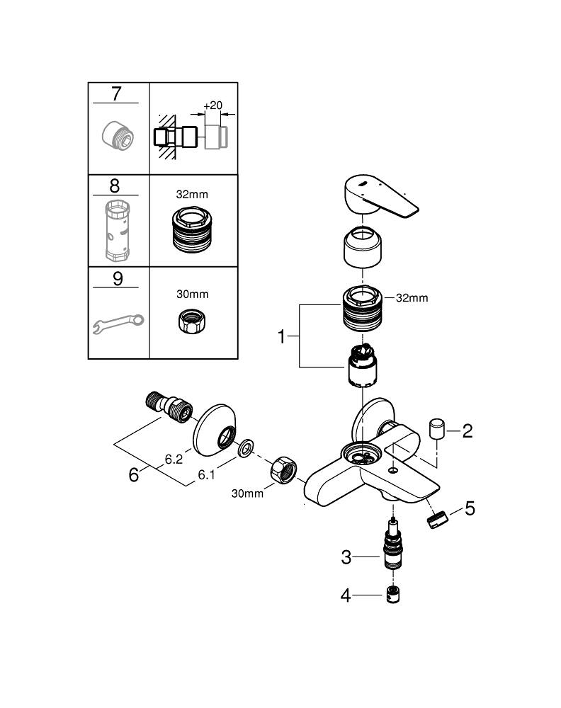 GROHE BauEdge badkraan met koppelingen chroom