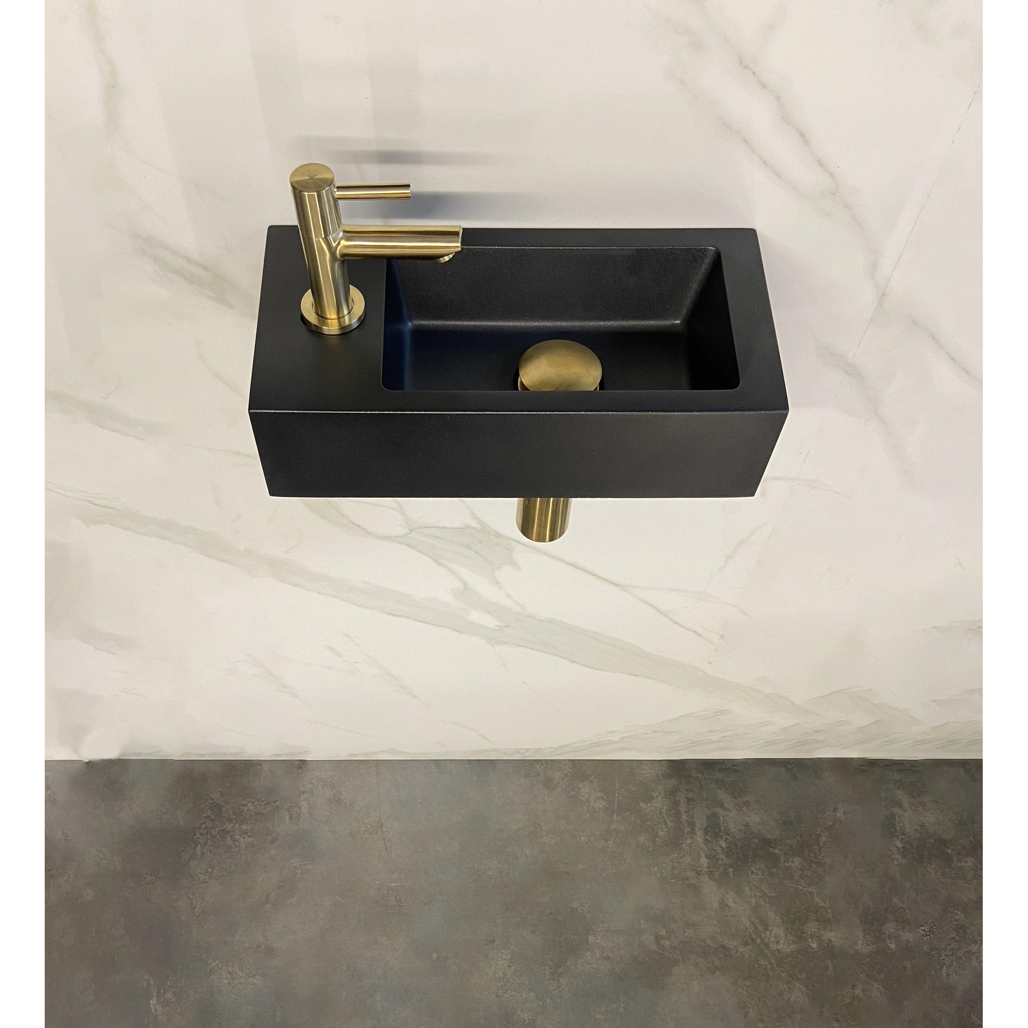 Wiesbaden Fonteinset Rhea S mini met fontein links quartz, kraan, sifon en afvoerplug geborsteld messing