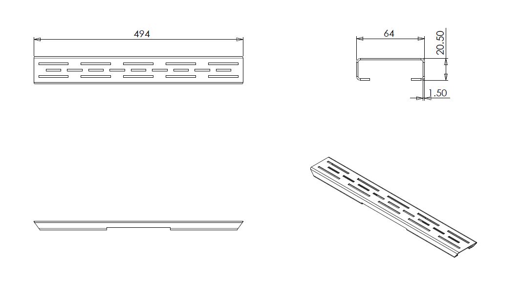 Wiesbaden Rooster voor douchegoot met flens 50 x 7 cm mat zwart