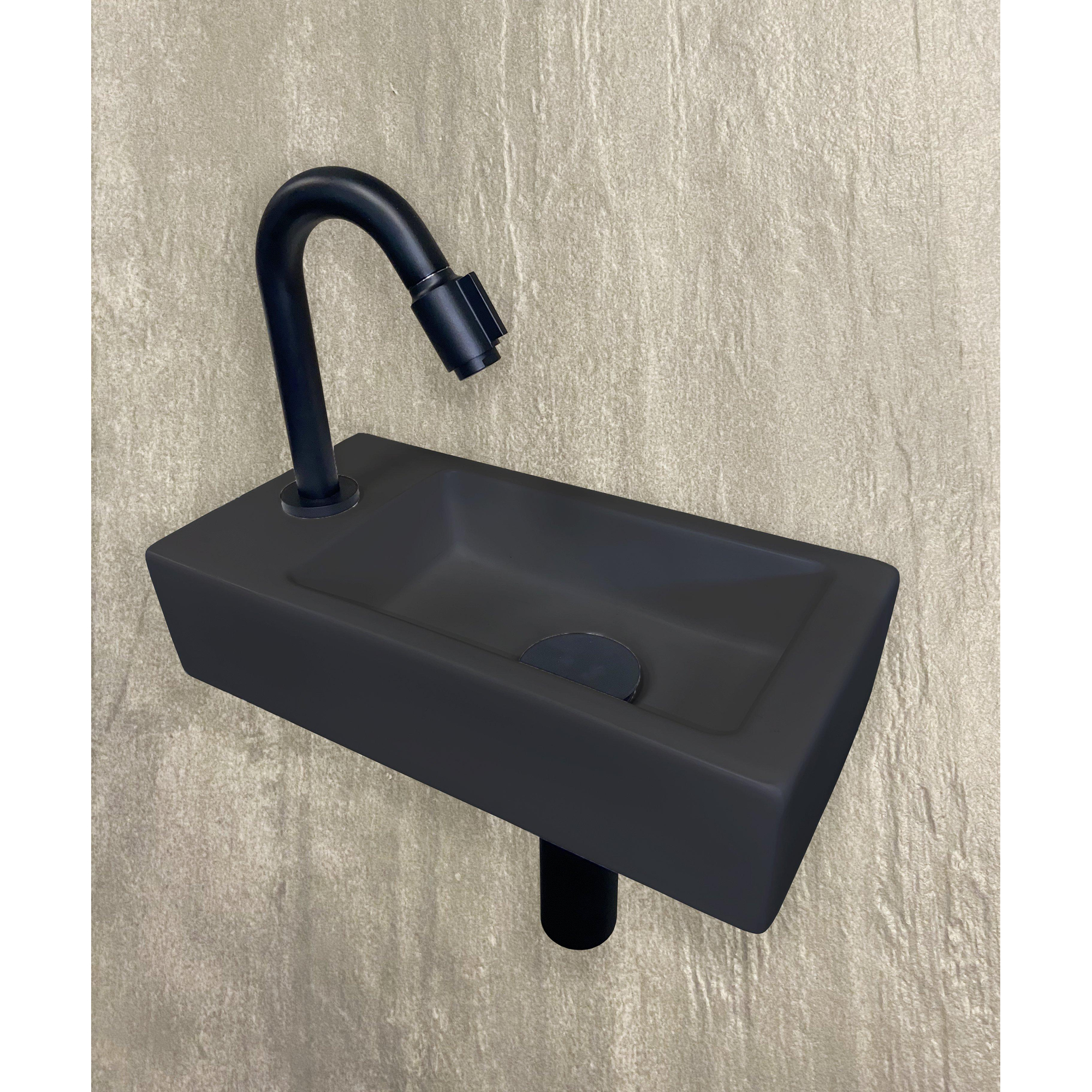 Wiesbaden Fonteinset Rhea S mini met fontein links quartz, kraan, sifon en afvoerplug mat zwart
