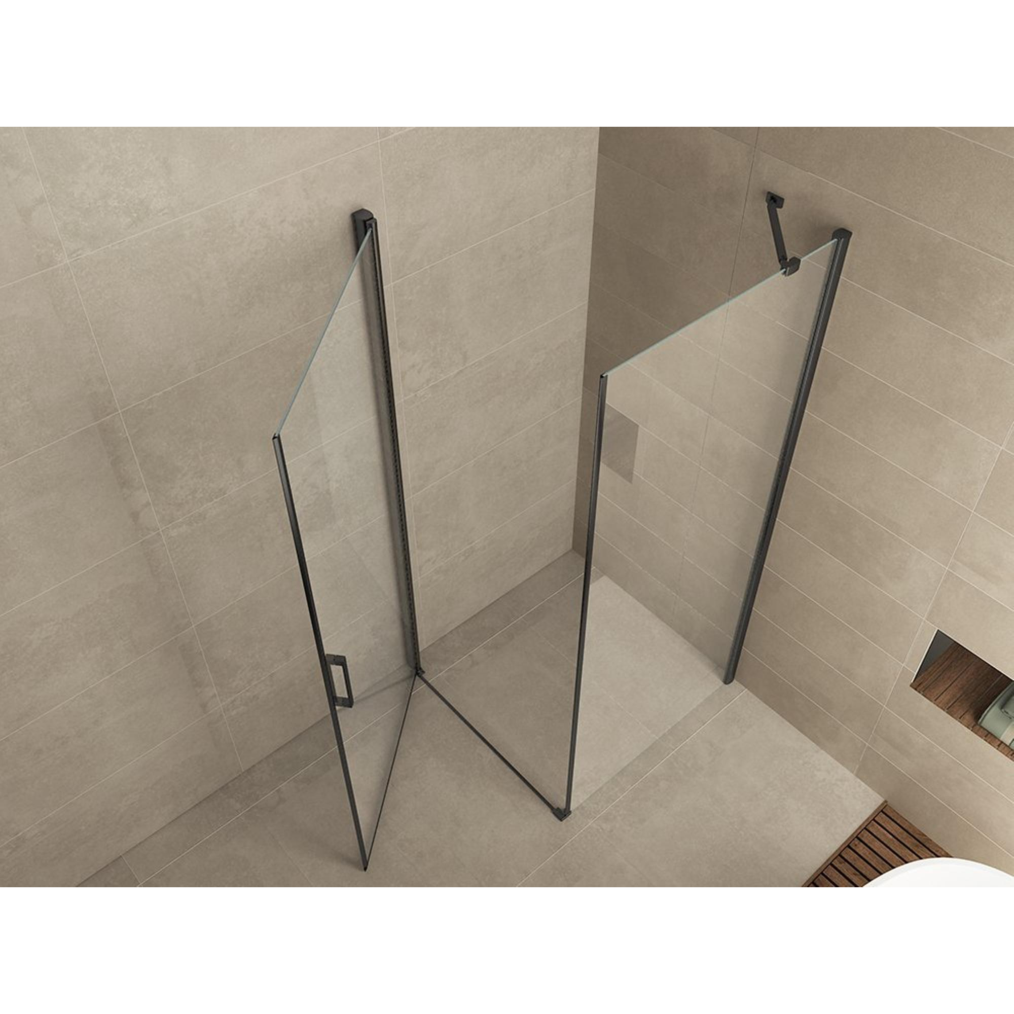 Deur 90cm, wand 90cm en 200cm hoog inclusief 2 chroom wand profielen welke 20mm aan beide zijden naar binnen verstelbaar zijn.