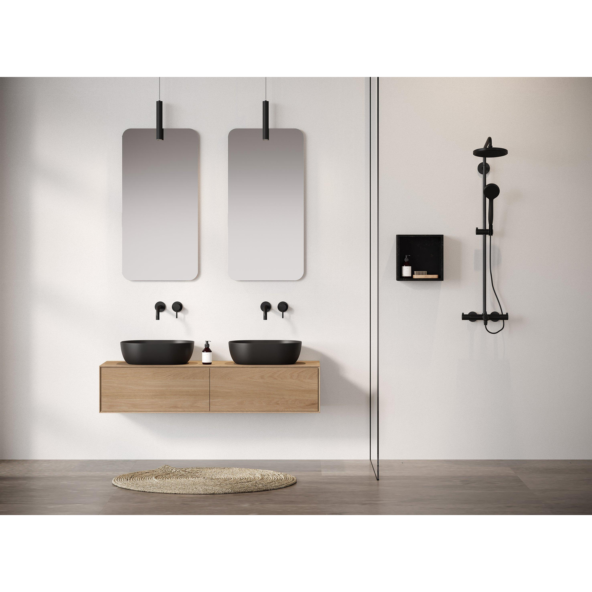 De Looox Wood collectie past zich aan aan verschillende badkamerstijlen en groottes. Of je nu een compacte badkamer hebt of een luxe en ruime ruimte, deze wastafelonderbouwkast past perfect. De tijdloze uitstraling en praktische indeling maken het een veelzijdige keuze voor elke badkamerinrichting.