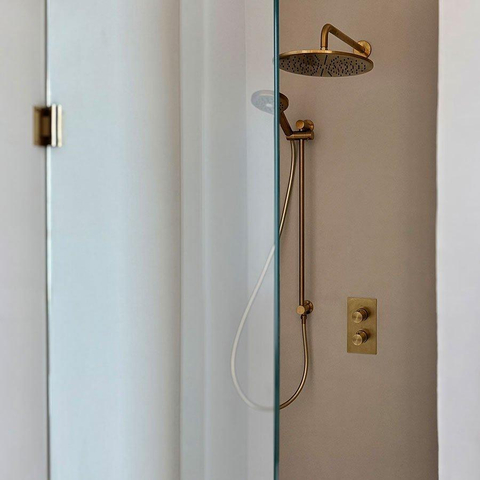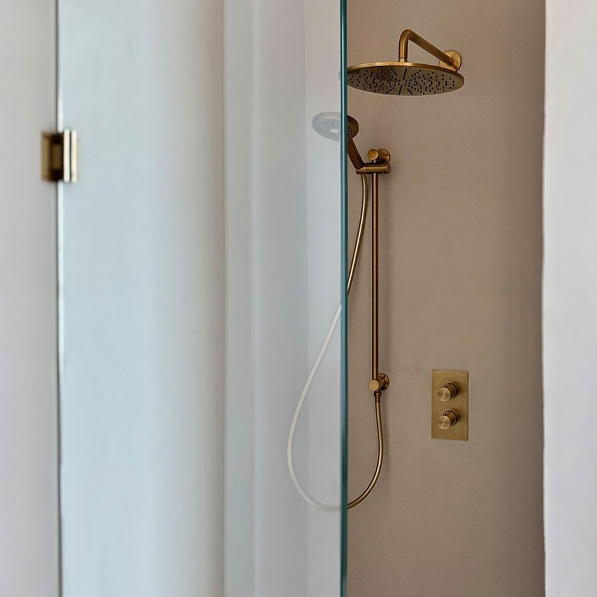 De Brauer Gold Edition Regendoucheset straalt luxe uit in elke badkamer. Het geborsteld gouden design geeft een gevoel van exclusiviteit en elegantie. De gladde knop en de perfect ronde handdouche voegen een vleugje verfijning toe aan de set. Ervaar de ultieme luxe met deze prachtige inbouw regendoucheset van Brauer.