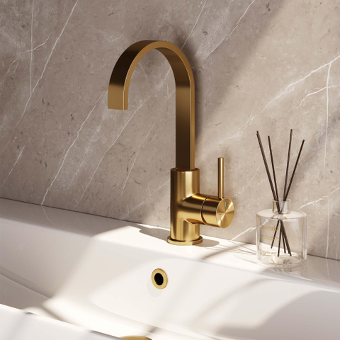 Brauer Gold - Edition Wastafelmengkraan opbouw - hoog - draaibaar - platte uitloop - model a - PVD - geborsteld goud
