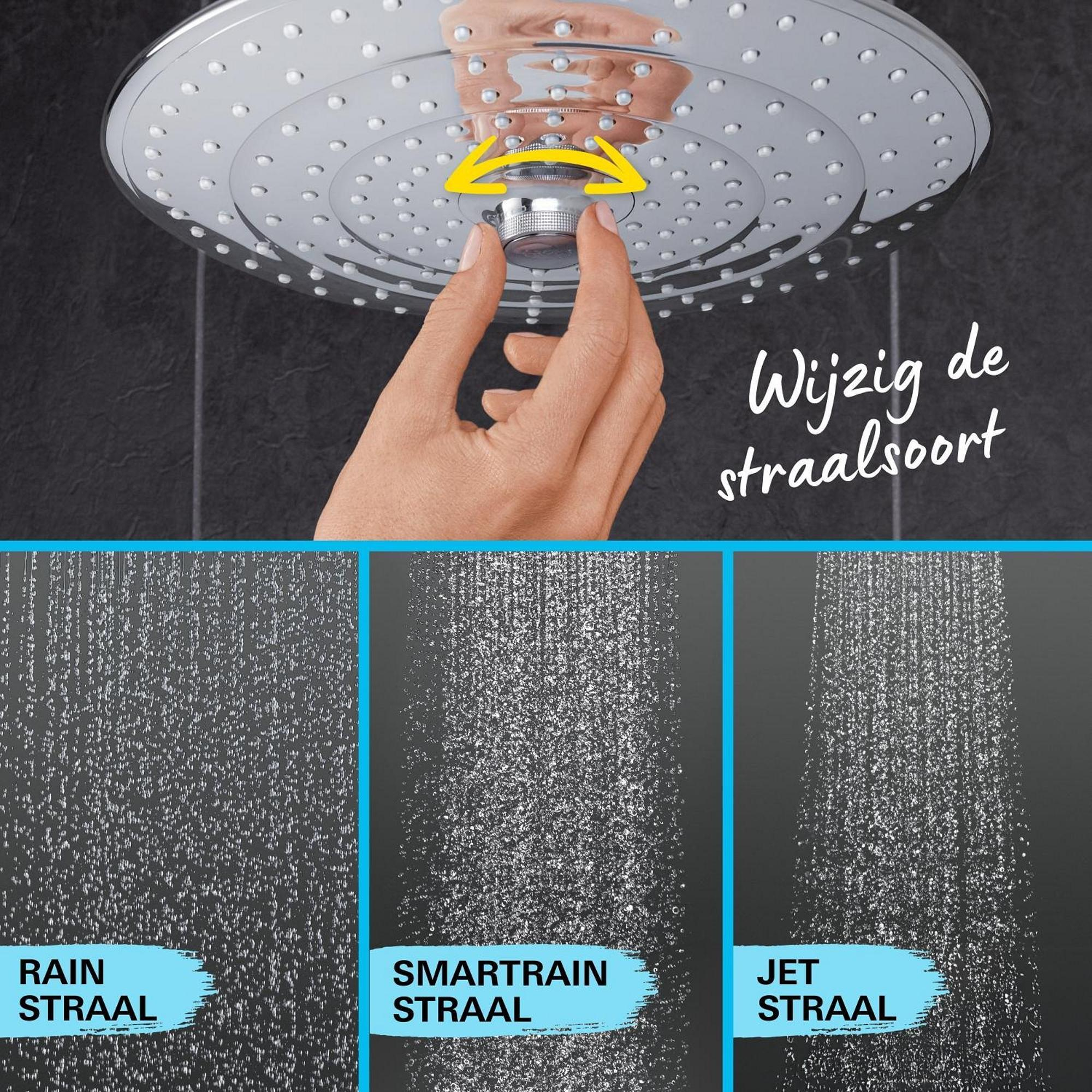 - Hoofddouche van 26 cm met drie straalsoorten: Rain, SmartRain en Jet voor een veelzijdige douche-ervaring