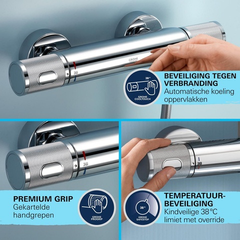 - GROHE CoolTouch voorkomt verbranding door een koele buitenkant