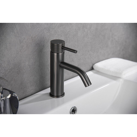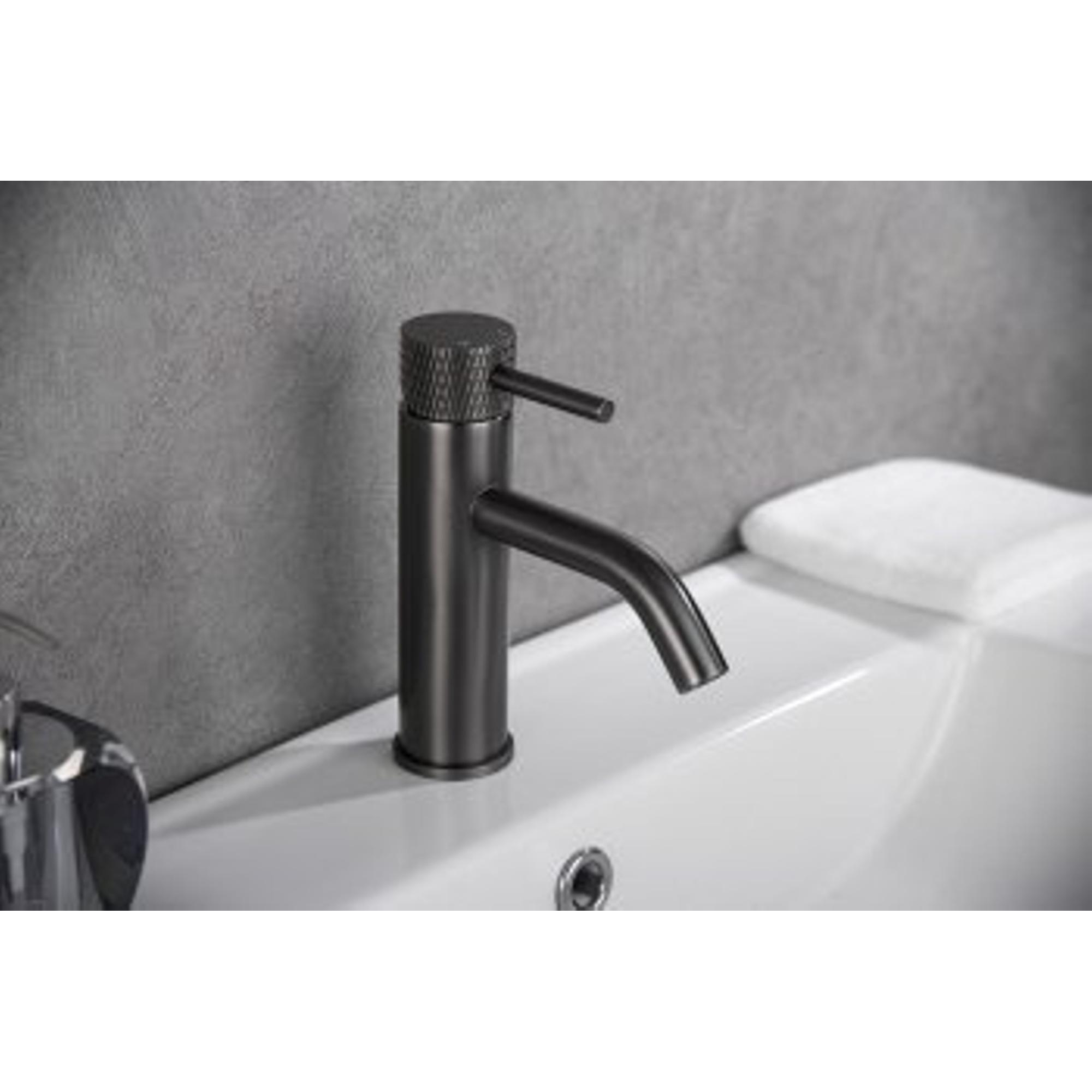 Wiesbaden Ribbd wastafelkraan met coldstart gunmetal PVD