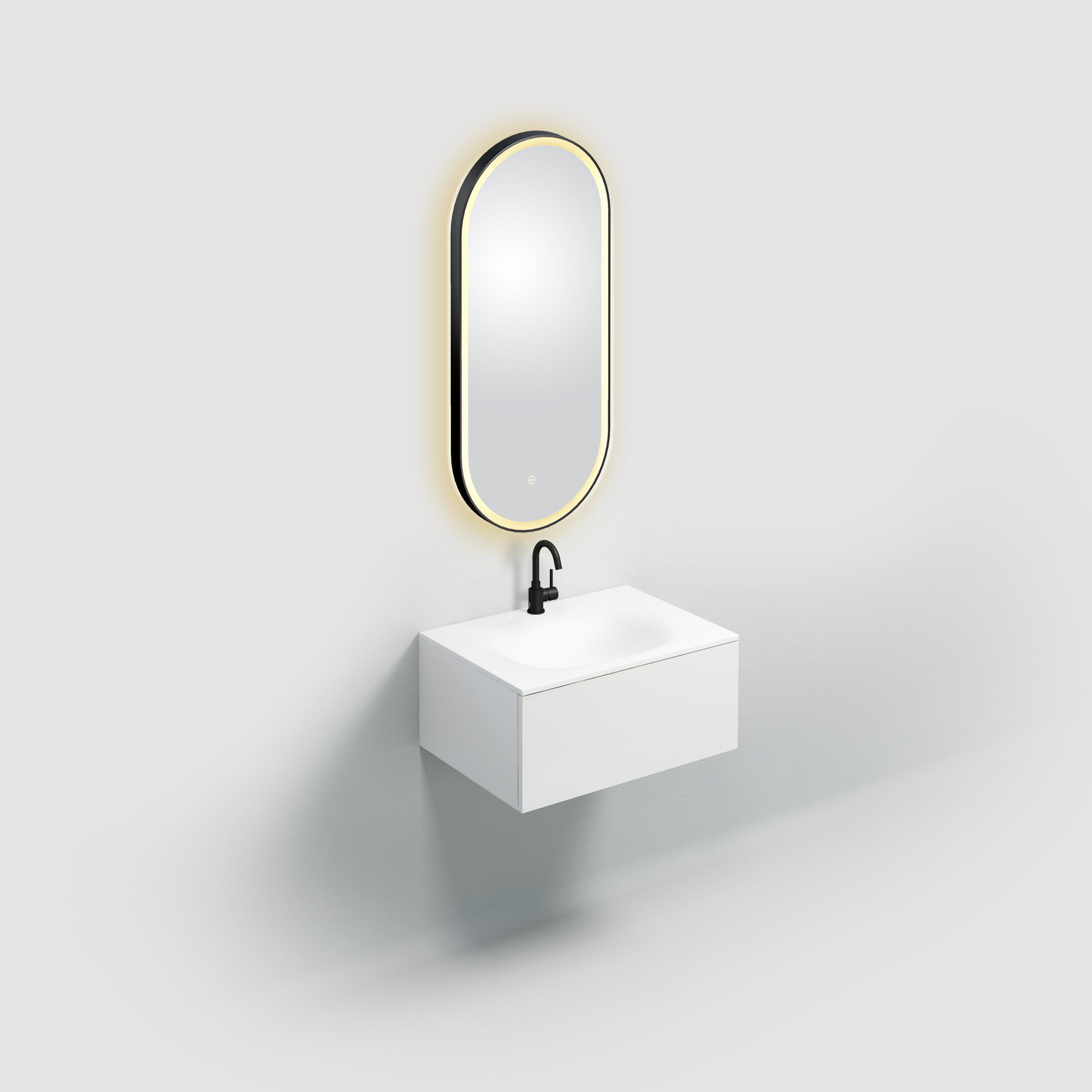 Met zijn geïntegreerde LED-verlichting en strakke ovale vorm straalt de Clou Look at Me spiegel een moderne uitstraling uit. Deze spiegel is ontworpen met oog voor detail en combineert functionaliteit met een eigentijds design. Het gebruik van hoogwaardige materialen en de afwerking in zwart mat maken deze spiegel een tijdloze toevoeging aan jouw badkamer.