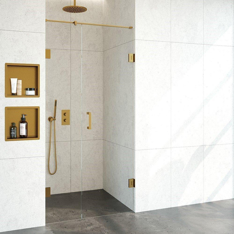 De Saniclass Create Nisdeur straalt elegantie uit dankzij het profielloze ontwerp en de goud geborstelde afwerking. Deze nisdeur voegt een vleugje luxe toe aan elke badkamer en creëert een sfeer van verfijning en stijl. Het 8mm veiligheidsglas zorgt niet alleen voor een moderne uitstraling, maar ook voor een gevoel van ruimte en helderheid in de badkamer.