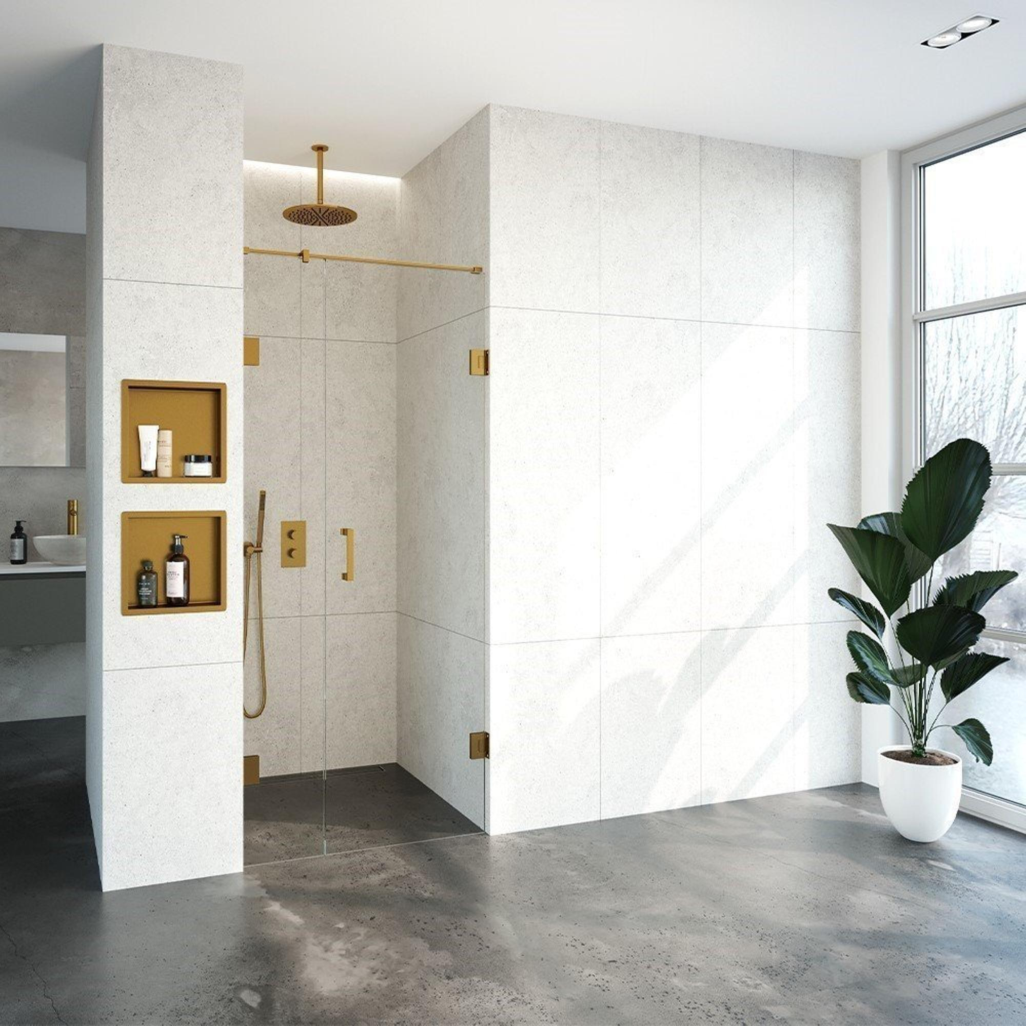 Saniclass Create Nisdeur - 90x200cm - 2-delig - profielloos - antikalk - 8mm veiligheidsglas - Goud geborsteld
