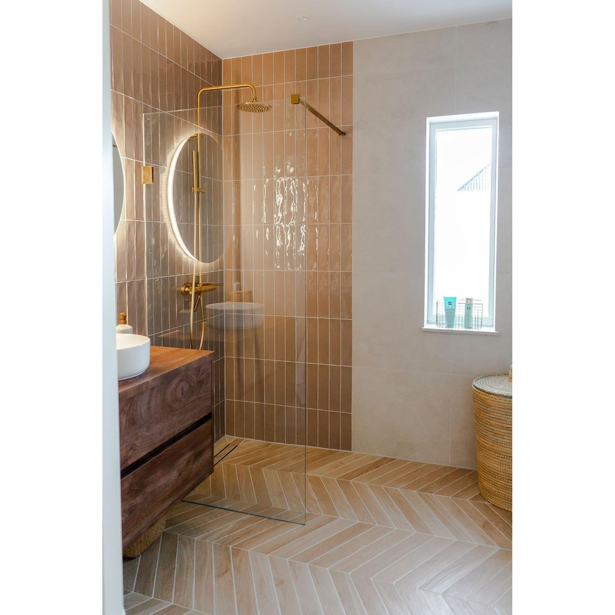 Met zijn 8mm veiligheidsglas en Goud geborstelde afwerking straalt de Saniclass Create Inloopdouche luxe uit. Het dikke veiligheidsglas zorgt voor stevigheid en duurzaamheid, terwijl de gouden tint een vleugje elegantie toevoegt aan de badkamer. Deze inloopdouche biedt niet alleen een luxe douche-ervaring, maar dient ook als een decoratief element dat de badkamer transformeert tot een stijlvolle ruimte.