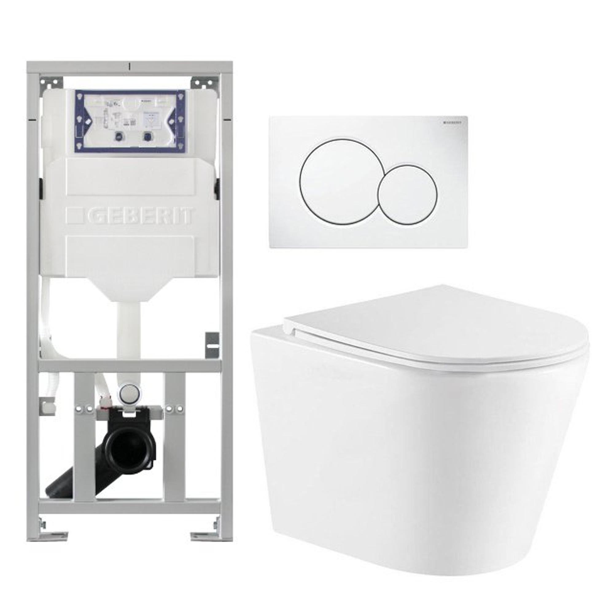 QeramiQ Dely Toiletset - Geberit UP320 inbouwreservoir - met Burda frame - witte bedieningsplaat - toilet - zitting - mat wit