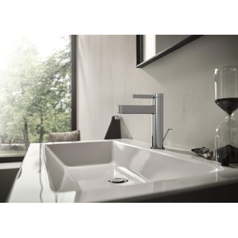 Met deze slanke en elegante wastafelkraan geef je jouw badkamer een moderne en pure uitstraling. Het minimalistische ontwerp met strakke lijnen zorgt voor een rustige sfeer waarin functionaliteit en stijl perfect samenkomen. Dankzij de lange vleugelgreep bedien je de kraan moeiteloos en nauwkeurig, wat zorgt voor een prettige gebruikservaring. De chroomfinish glanst prachtig en is eenvoudig schoon te houden, zodat je badkamer er altijd verzorgd uitziet. Bovendien draagt deze kraan bij aan een duurzame leefstijl dankzij de geïntegreerde waterbesparende technologie, die het waterverbruik beperkt zonder in te leveren op comfort. Met de meegeleverde trekstang-afvoerset open en sluit je de afvoer met één simpele beweging, waardoor je badkamer er niet alleen mooi uitziet, maar ook praktisch in gebruik is. Zo wordt elke dag even genieten van jouw badkamer een vanzelfsprekendheid.