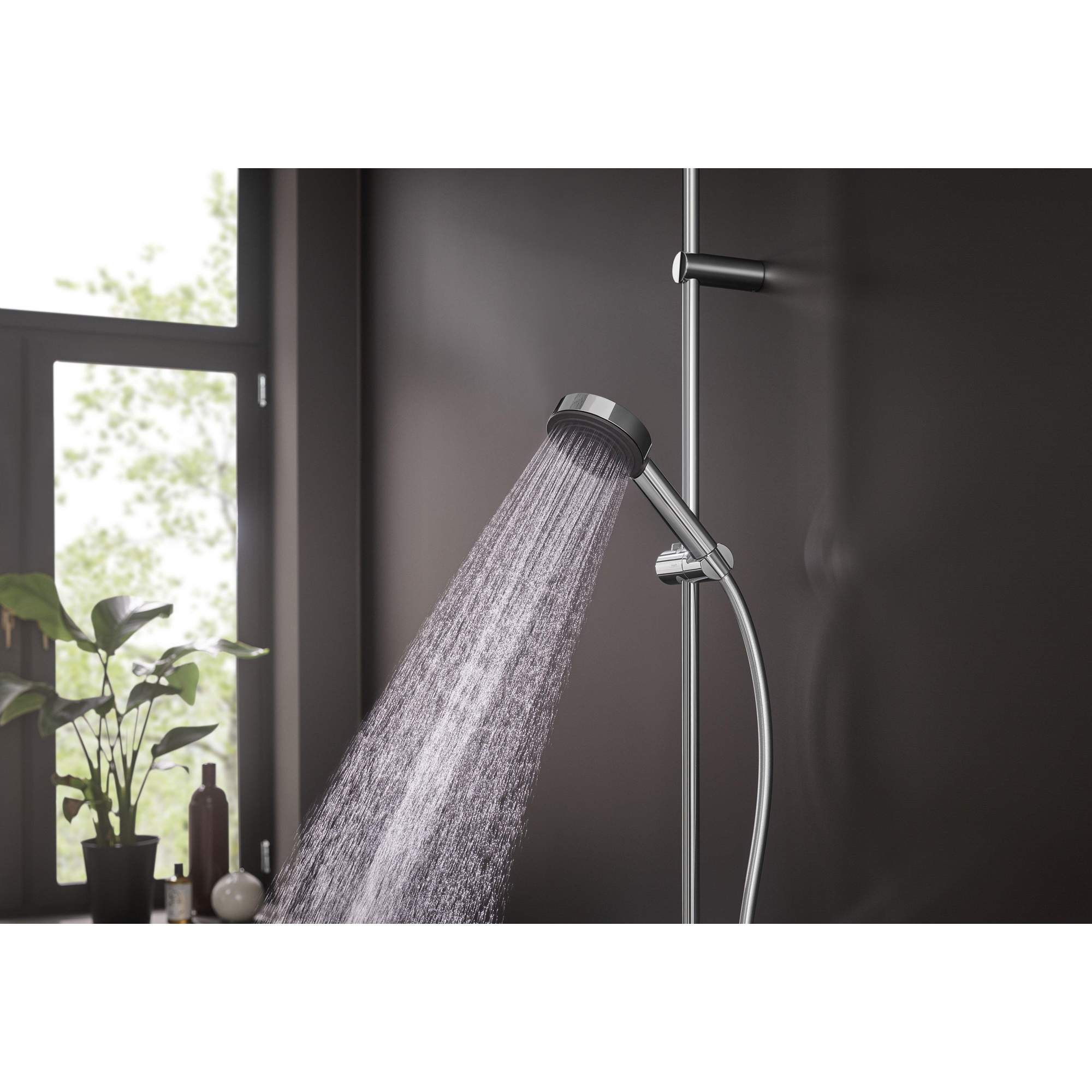 De ergonomische greep ligt comfortabel in de hand, wat het douchen extra aangenaam maakt. Dankzij de standaard aansluiting (G 1/2) is deze handdouche eenvoudig te combineren met vrijwel elke doucheslang. De fijne PowderRain straal omhult je lichaam met de zachtste waterdruppels, wat zorgt voor een ontspannende en verkwikkende douche-ervaring. Dit slimme ontwerp maakt het dagelijks douchen niet alleen prettiger, maar ook efficiënter en veiliger.