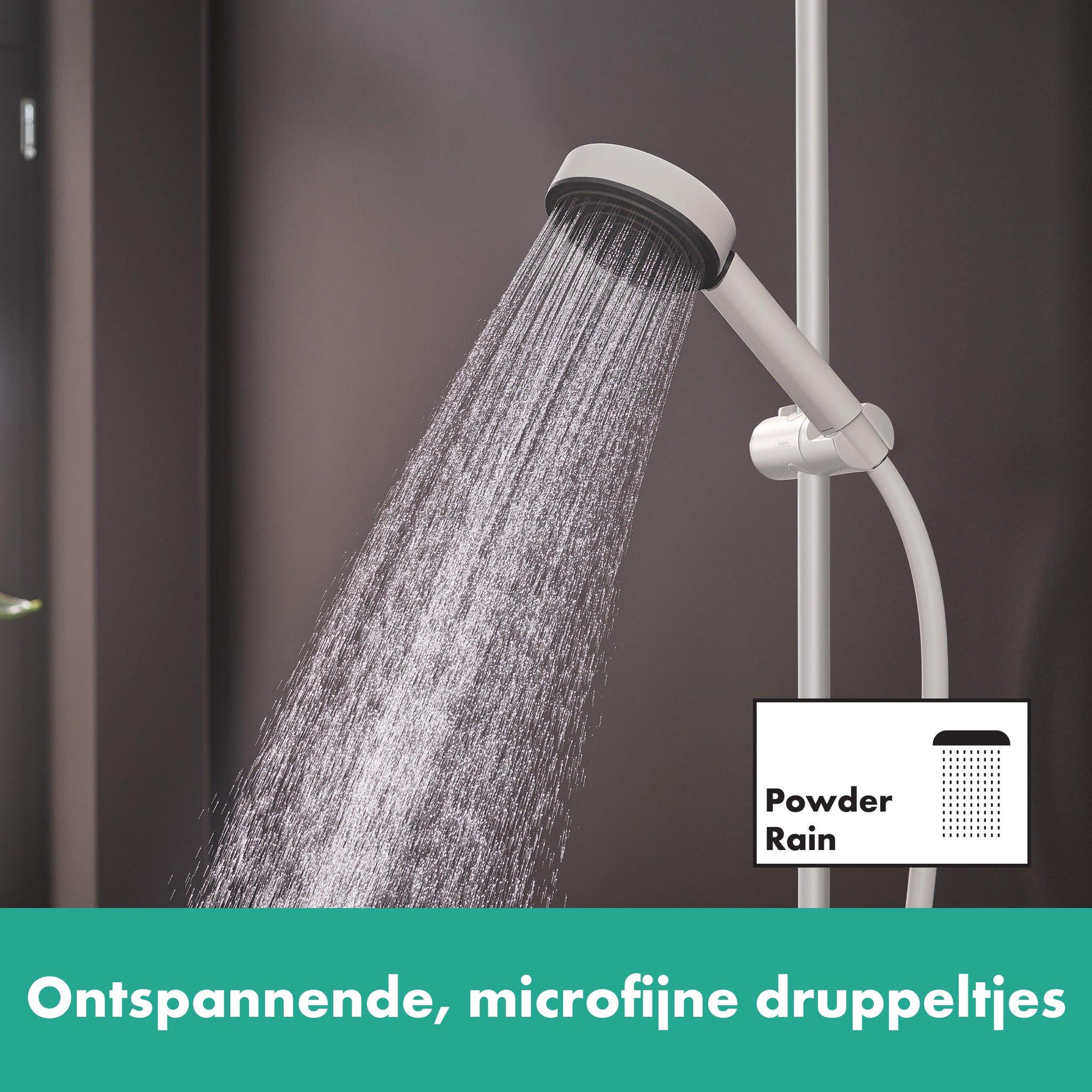 De hansgrohe straalsoort PowderRain omhult het lichaam zachtjes in een cocon van de fijnste waterdruppels. Ontspan met een sensuele waterervaring. Met hansgrohe Pulsify wordt uw douche een oase van dagelijkse herstel- en ontspanmomentjes.