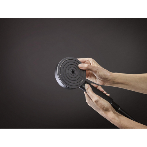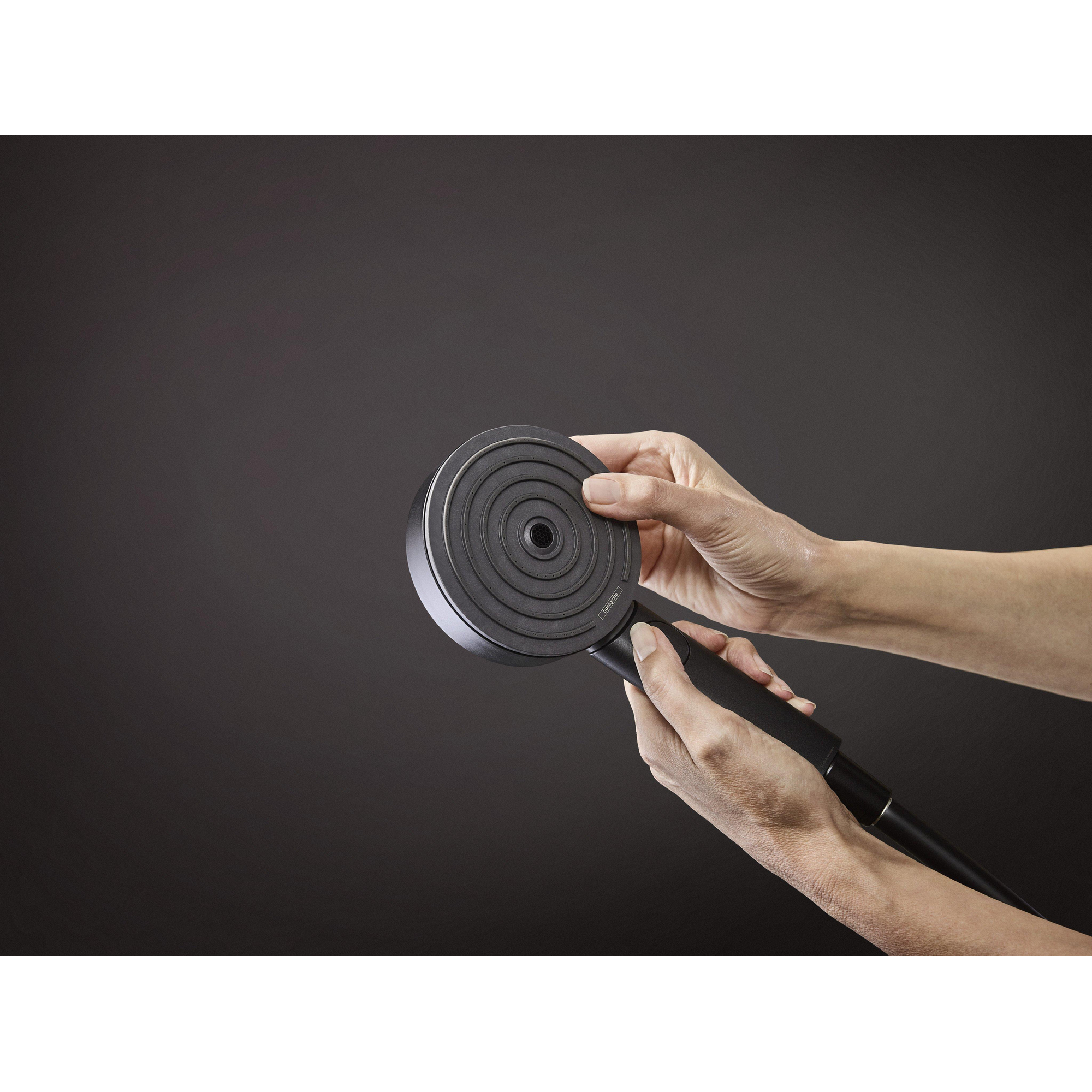 Met zijn mat zwarte afwerking en ronde vorm is deze handdouche een echte blikvanger in je badkamer. Het design is modern en toch tijdloos, waardoor het moeiteloos past bij verschillende badkamerstijlen. De grafietkleurige straalplaat voegt een subtiel contrast toe dat het geheel een luxe uitstraling geeft. Niet alleen ziet het er prachtig uit, maar de afwerking is ook eenvoudig schoon te houden. Zo blijft jouw handdouche er altijd als nieuw uitzien, zonder dat je er veel onderhoud aan hebt. Een stijlvolle keuze die jouw badkamer een persoonlijk en eigentijds karakter geeft.