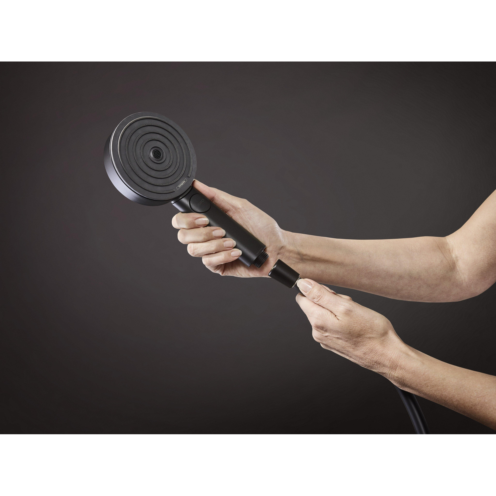 Stel je voor: een douche-ervaring die niet alleen heerlijk aanvoelt, maar ook slim omgaat met water. Deze handdouche combineert een strak, mat zwart design met innovatieve technologieën die jouw badkamer naar een hoger niveau tillen. Met een royale diameter van 10,5 cm omhult de douchekop je met zachte, fijne waterdruppels of juist een krachtige massagestraal, precies zoals jij dat wilt. Het tijdloze uiterlijk geeft je badkamer een moderne en stijlvolle uitstraling, terwijl de praktische functies zorgen voor dagelijks comfort en gemak. Dankzij de slimme waterbesparende technologie geniet je van een verfrissende douche zonder onnodig water te verspillen. Zo maak je van elke douchebeurt een moment van ontspanning en duurzaamheid, precies wat je zoekt in een hoogwaardige handdouche.