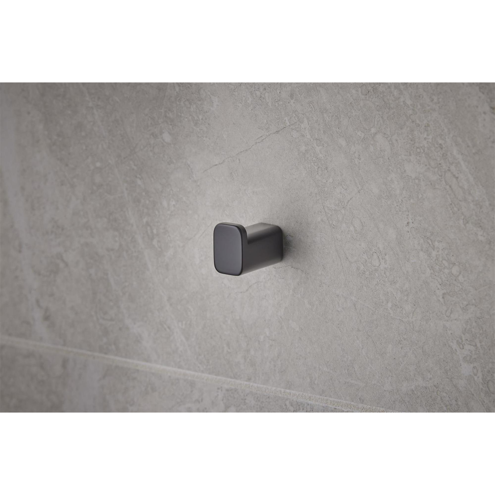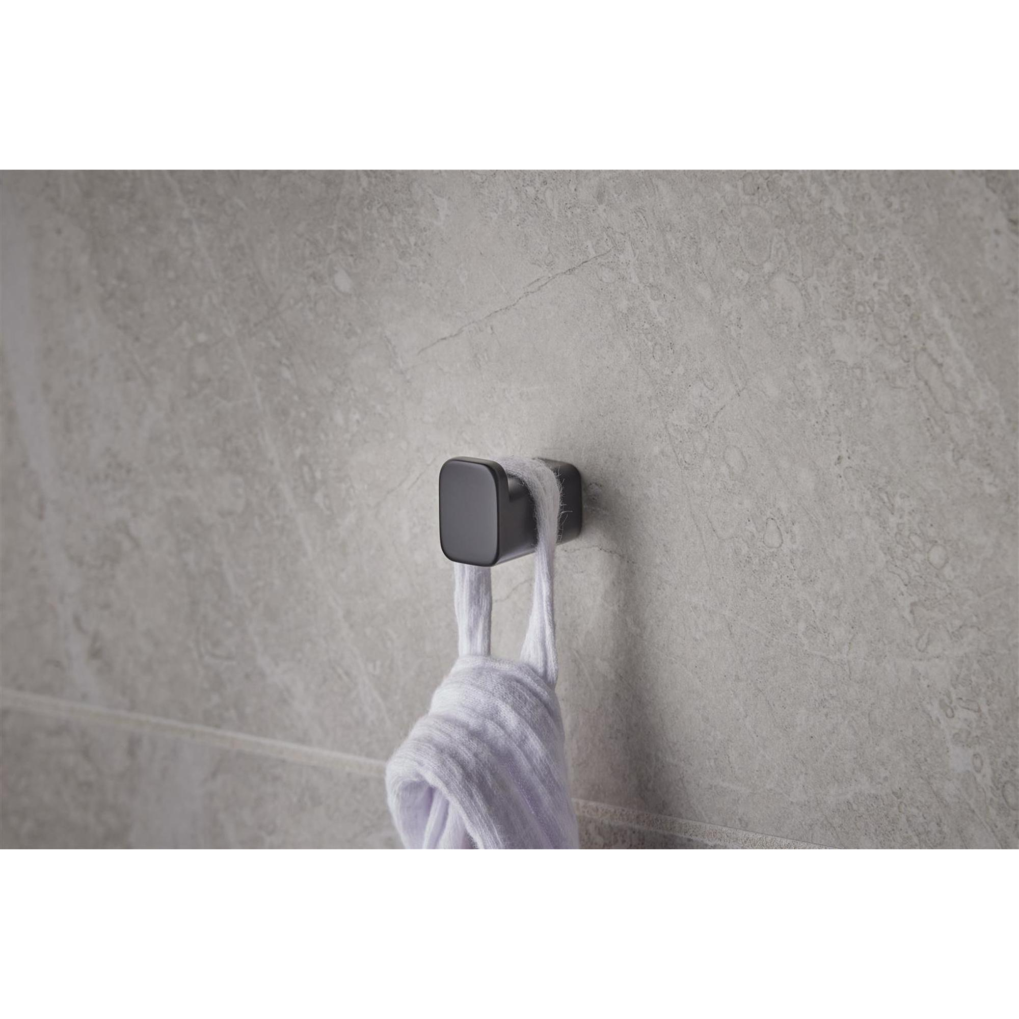 Met dit stijlvolle accessoire geef je jouw badkamer direct een moderne en praktische upgrade. De compacte haak biedt een perfecte plek om je handdoek of badjas netjes en binnen handbereik te hangen. Dankzij het minimalistische ontwerp voeg je niet alleen functionaliteit toe, maar ook een subtiele, eigentijdse uitstraling die moeiteloos past bij diverse badkamerstijlen. Het matte zwarte oppervlak zorgt voor een tijdloze look die zowel strak als warm oogt, waardoor je badkamer een extra dimensie krijgt. Bovendien geniet je van een product dat lang meegaat en eenvoudig te onderhouden is, zodat je badkamer er altijd verzorgd uitziet.