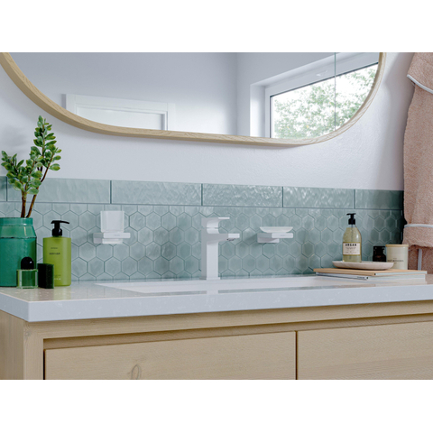 - Moderne zeephouder met schaal in mat wit voor een stijlvolle badkamer