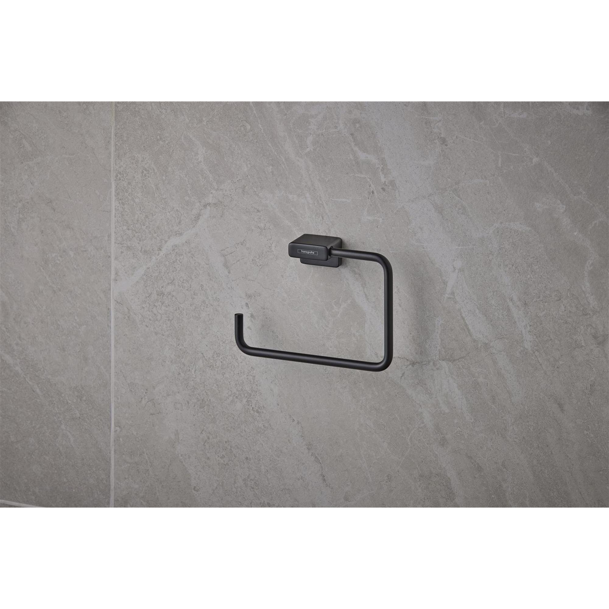 Het matte zwarte oppervlak geeft de handdoekring een tijdloze en elegante look die direct opvalt. Deze kleur past uitstekend bij moderne badkamerkranen en accessoires, vooral in combinatie met geometrische vormen. Het minimalistische ontwerp zorgt ervoor dat het product niet alleen functioneel is, maar ook een echte blikvanger in je badkamer. Zo creëer je een samenhangend en stijlvol geheel dat uitnodigt tot ontspanning en comfort.
