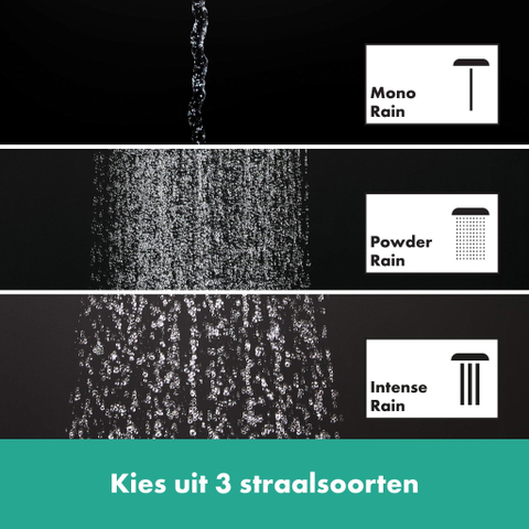 - Drie straalsoorten: PowderRain, IntenseRain en Massage voor optimale ontspanning