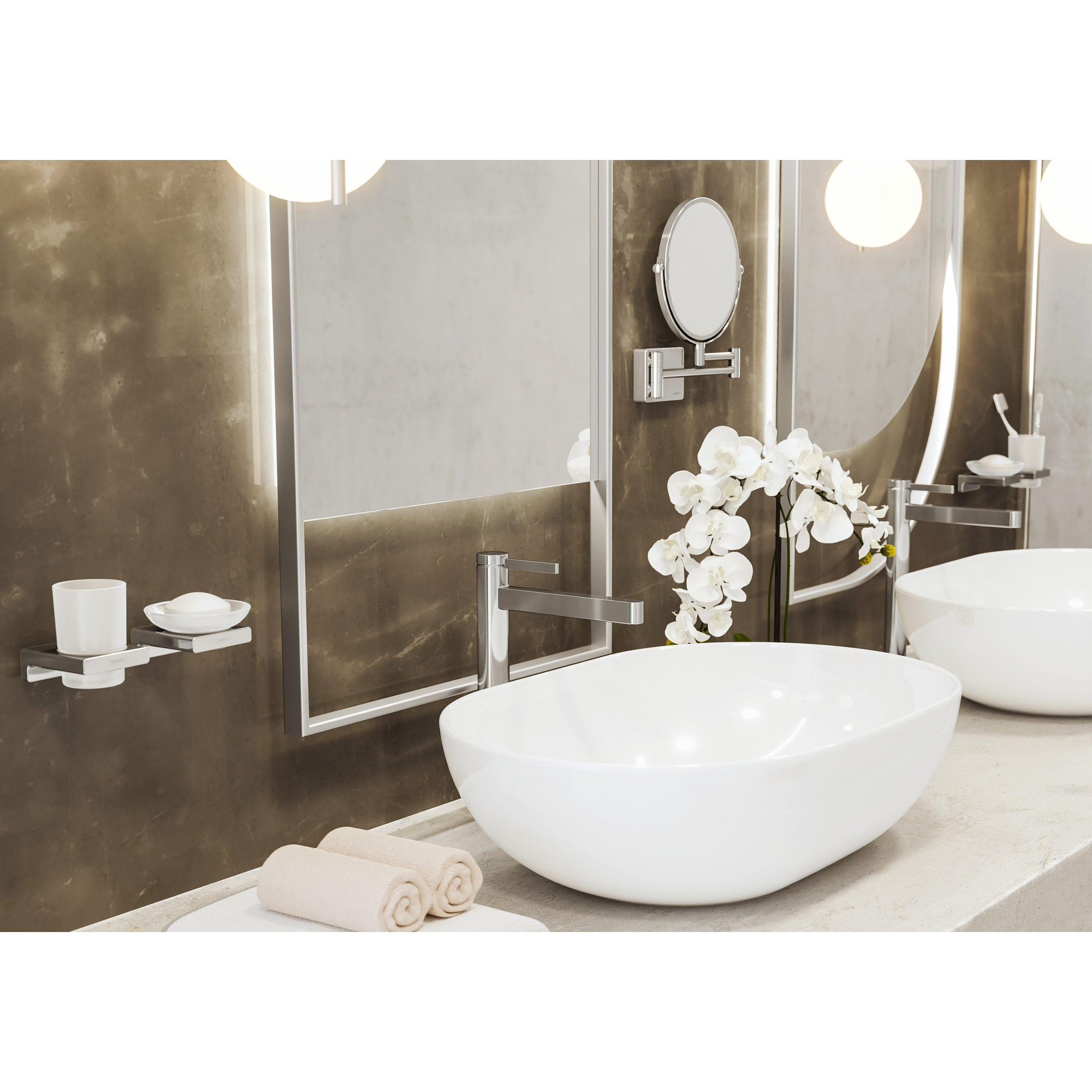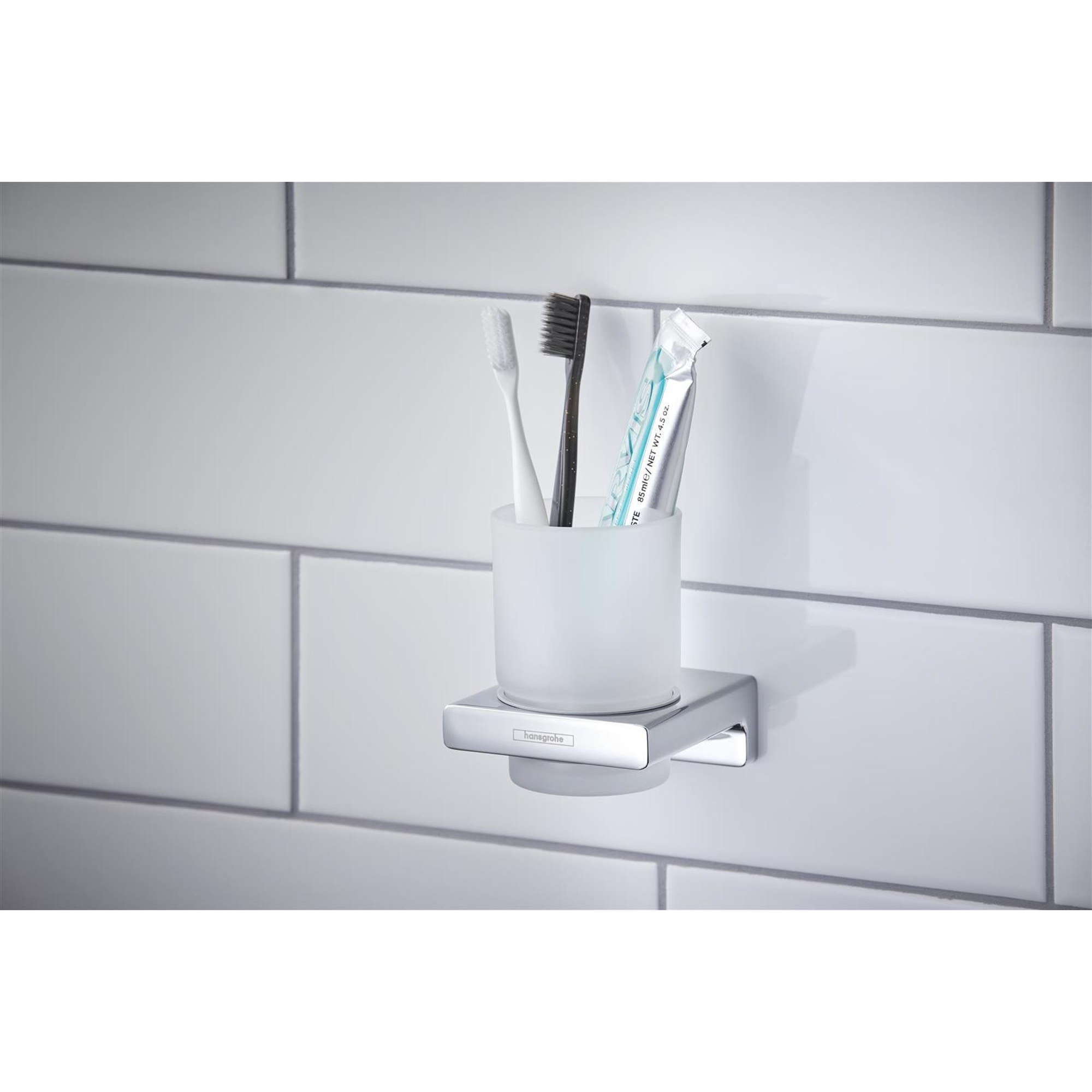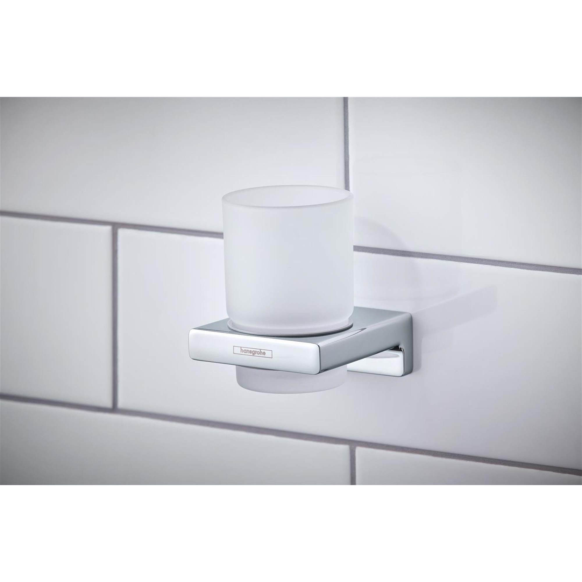 - Wandgemonteerde tandenborstelhouder van matglas (94x68 mm) met chroom afgewerkte metalen beugel