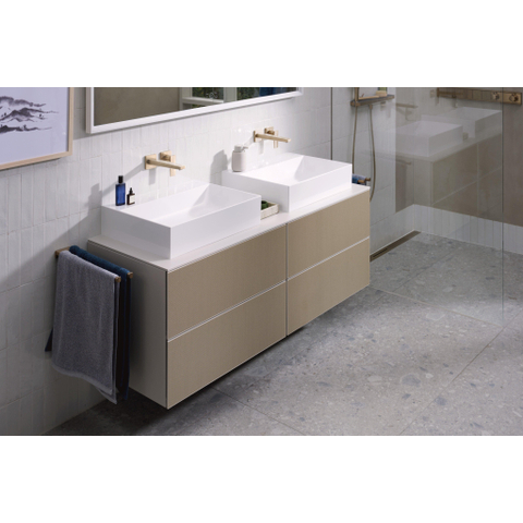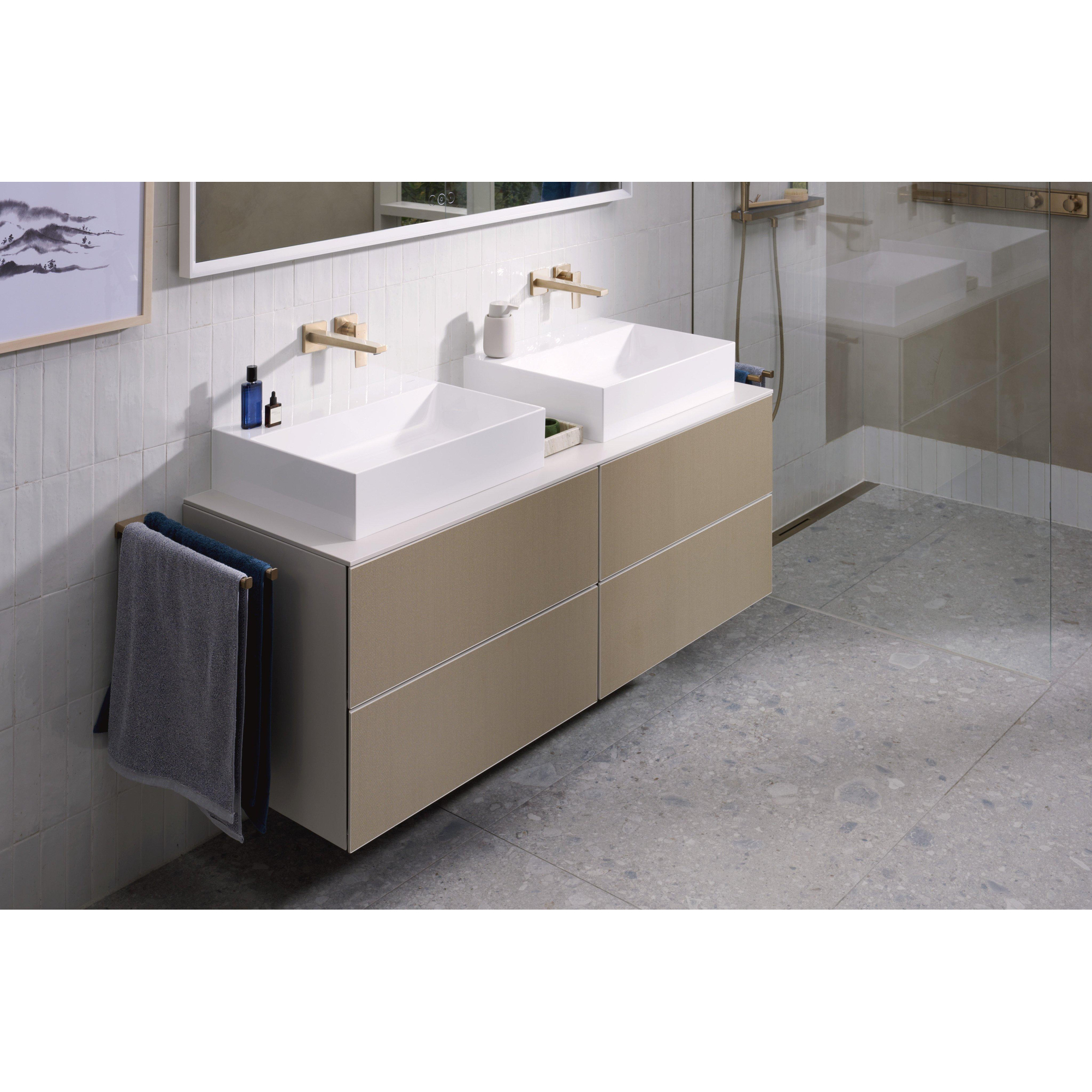 Met dit dubbele handdoekenrek geef je jouw badkamer direct een stijlvolle en praktische upgrade. Het rek biedt ruimte aan twee handdoeken, zodat je altijd een droge handdoek binnen handbereik hebt. Dankzij het minimalistische en moderne ontwerp voeg je niet alleen functionaliteit toe, maar ook een verfijnde uitstraling die perfect past bij strakke, geometrische badkamerkranen. Het geborsteld bronzen oppervlak zorgt voor een warme, luxe sfeer en is bovendien eenvoudig schoon te houden. Zo geniet je elke dag van een badkamer die niet alleen mooi oogt, maar ook prettig en efficiënt in gebruik is.